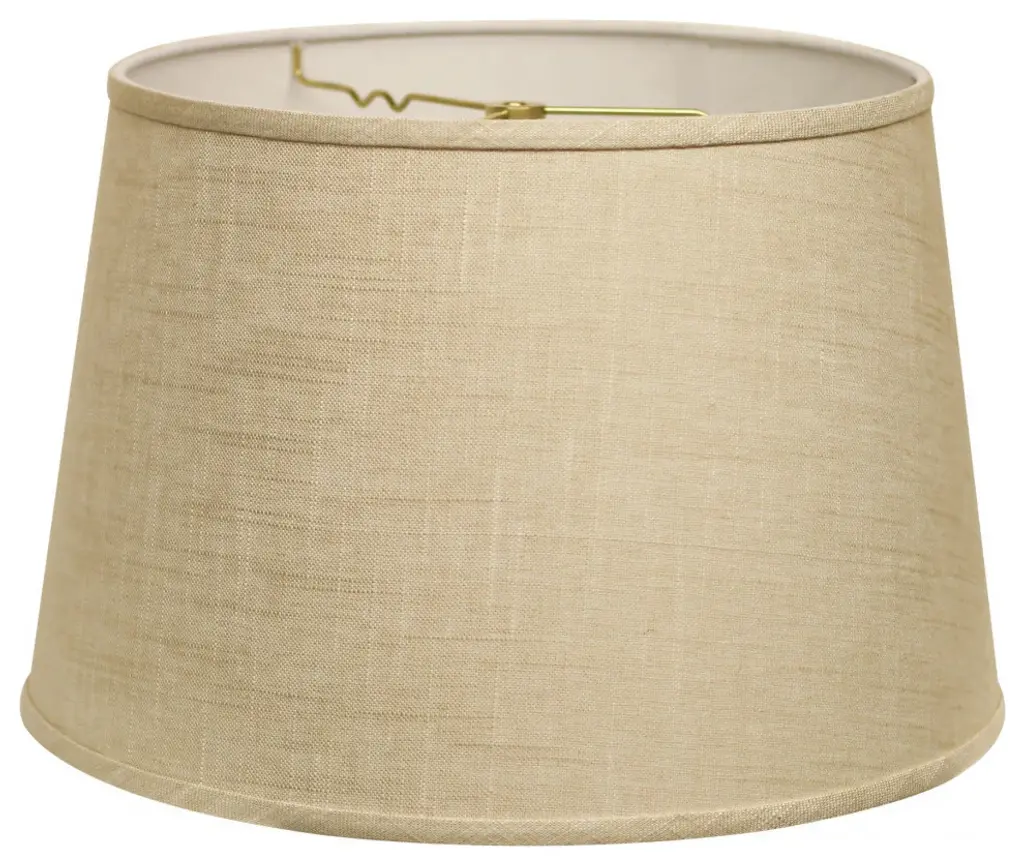 This Light Wheat Rounded Empire Slanted Linen Lampshade has a hint of mid-century modern flair and will be a great addition to your lamp base. This hardback lampshade includes a standard washer fitter that fits over a standard harp and can be used with your existing finial design. This high quality modified empire, crafted of the finest linen innsbruk cotton with a fold on top and bottom of the shade, is a great choice to add to your favorite base. 12" x 18" x 18"High Quality Fabric Lamp Shade.Includes Brass Finish Washer. Washer fitters sits on top of the harp.Intended for use with customer''s own finial.Shade measures 15" top diameter x 18" bottom diameter x 11.5" slant heightFeatures high-quality construction made from Linen Cotton Fabric.