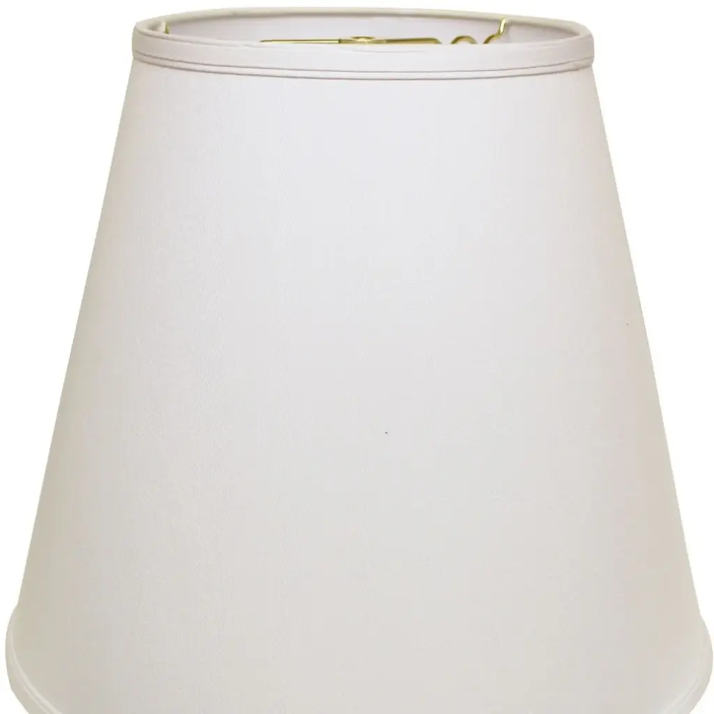 This White Deep Empire No Slub Lampshade has a hint of traditional flair and will be a great addition to your lamp base. This hardback lampshade includes a standard washer fitter that fits over a standard harp and can be used with your existing finial design. This high quality crafted drum shape has a slight slant to give it some visual interest and is crafted of the finest no slub innsbruk cotton with a fold on top and bottom of the shade. 15" x 18" x 18"