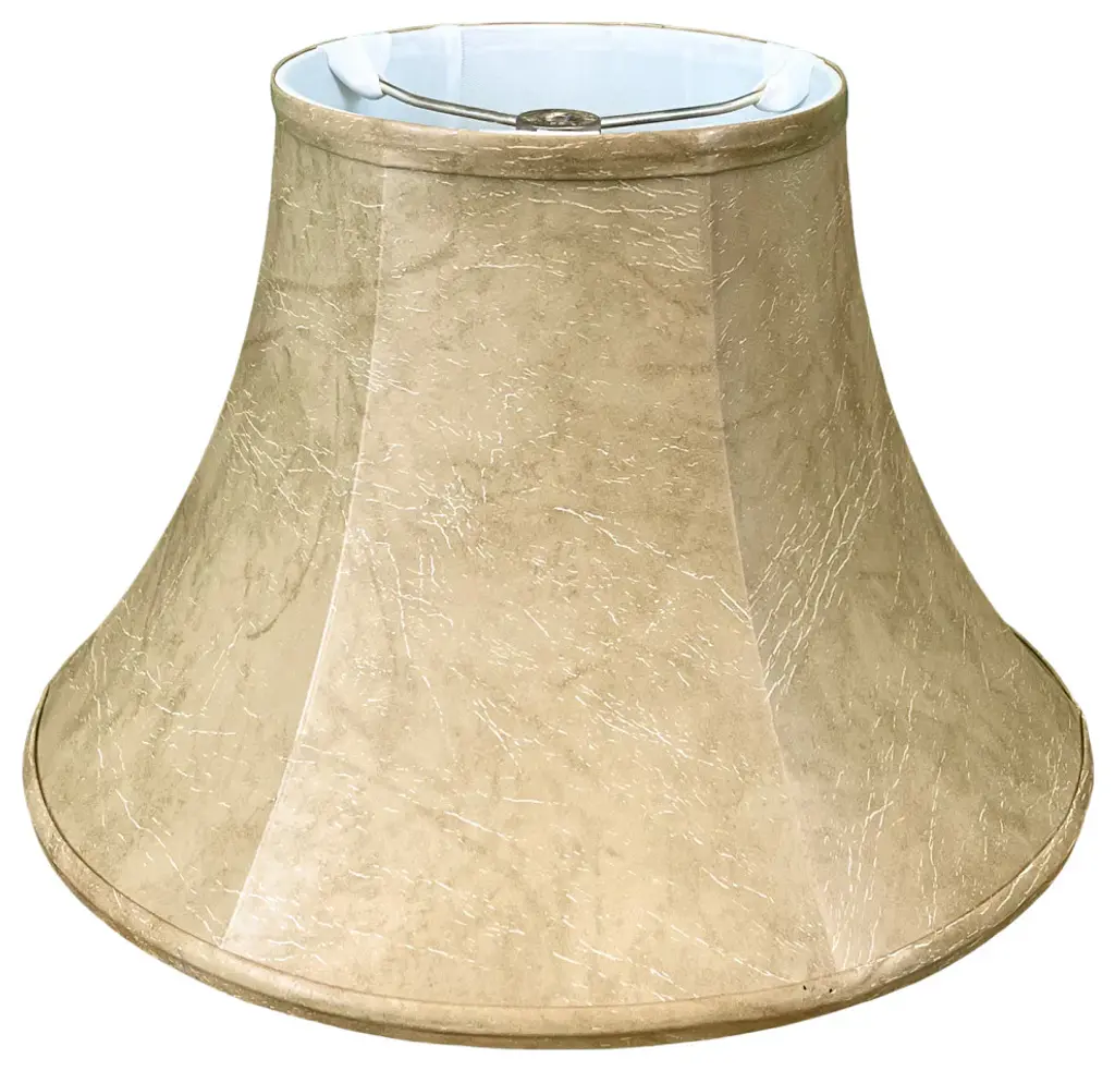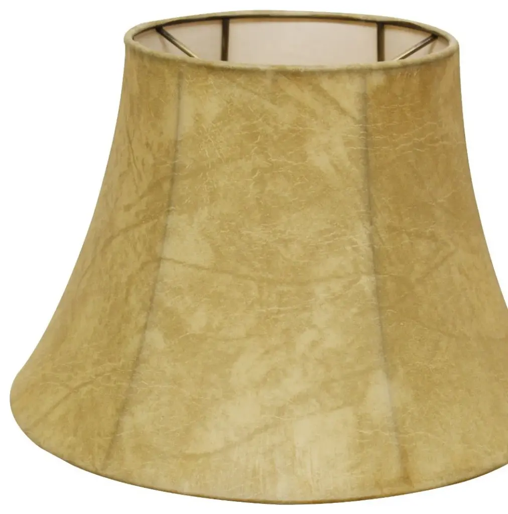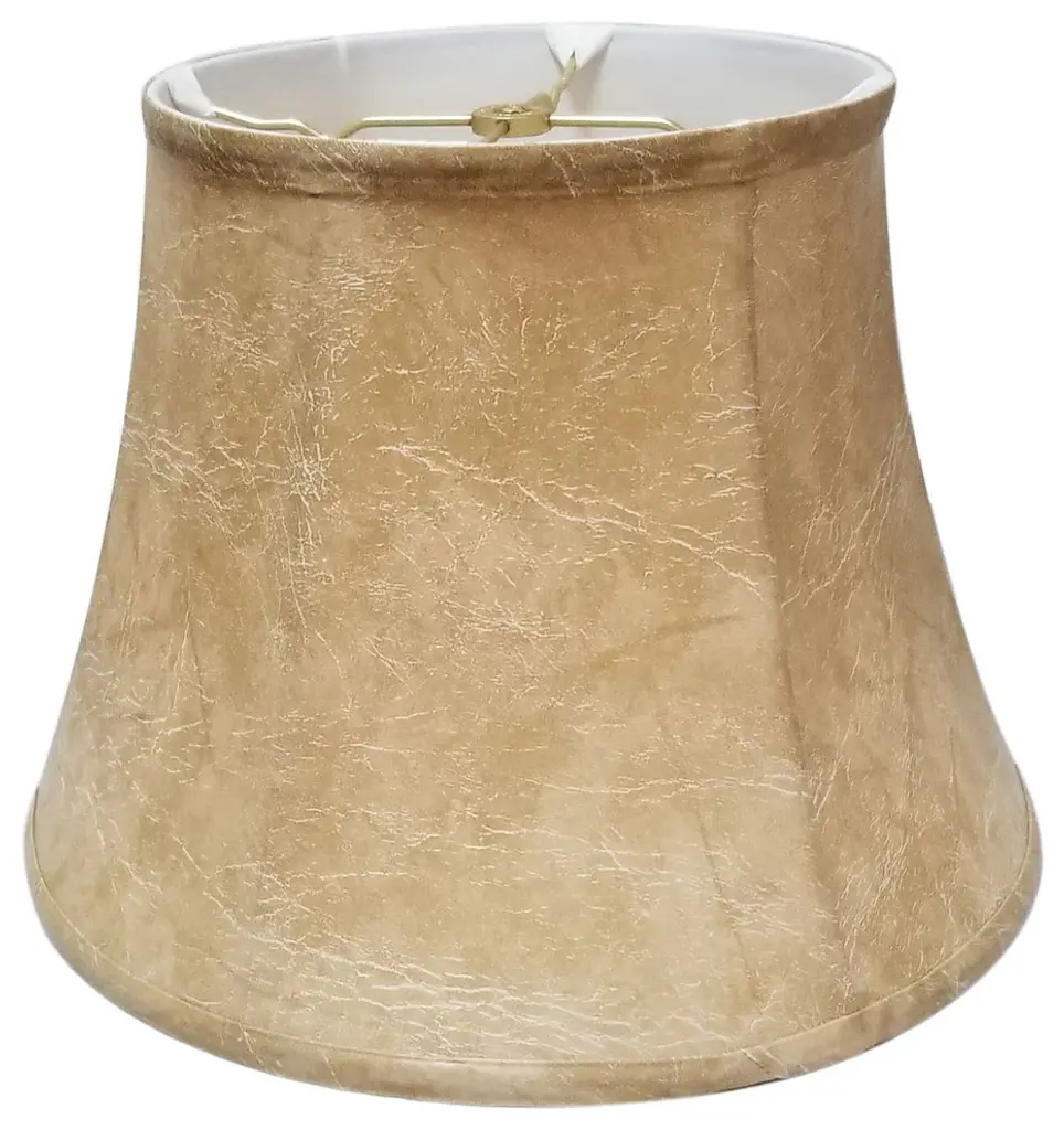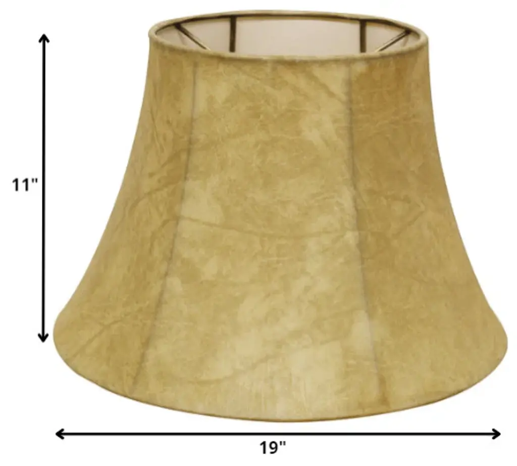 This 19" Faux Snakeskin Shallow Drum Parchment Lampshade has a hint of farmhouse flair and will be a great addition to your lamp base. This slant shallow drum softback lampshade includes a washer fitter that fits over a standard harp and can be used with your existing finial design. This high quality crafted drum shape has a slight slant to give it some visual interest and is crafted of the finest parchment with a fold on top and bottom of the shade. 11" x 19" x 19"