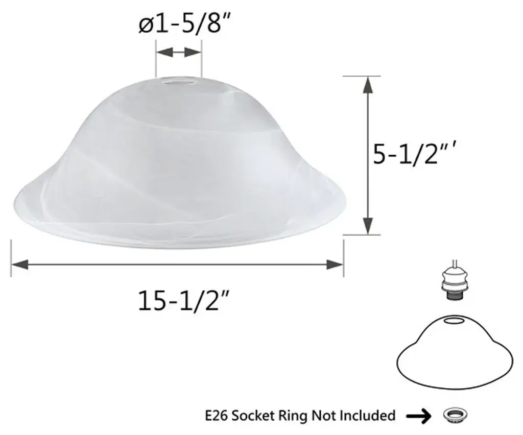Aspen Creative is dedicated to offering a wide assortment of attractive and well-priced portable lamps, kitchen pendants, vanity wall fixtures, outdoor lighting fixtures, lamp shades, and lamp accessories. We have in-house designers that follow current trends and develop cool new products to meet those trends. Product Detail• Etched Alabaster colored replacement glass• 5-1/2" hight x 15-1/2" diameter• Our replacement glass shades can be used on an assortment of Torchiere Lamp, Swag Lamp and Pendant• Upgrade and / or change the look for your fixtures with an easy to glass changeAspen Creative Item 23140-11A