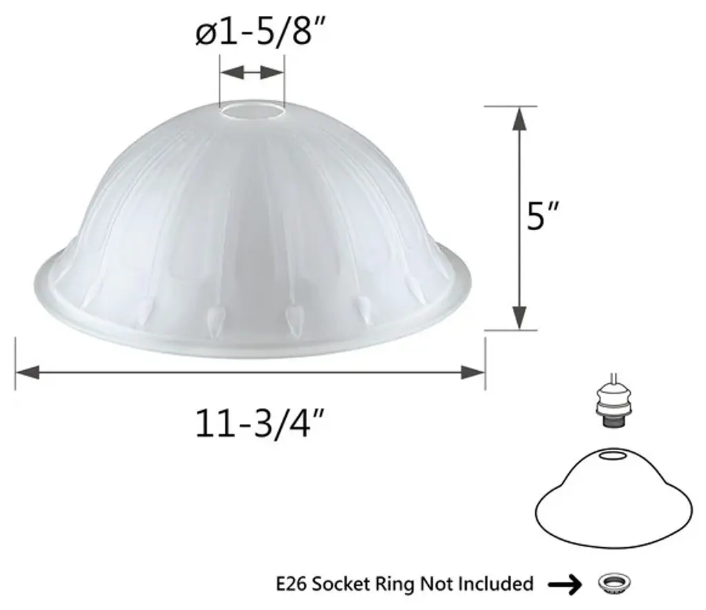 Aspen Creative is dedicated to offering a wide assortment of attractive and well-priced portable lamps, kitchen pendants, vanity wall fixtures, outdoor lighting fixtures, lamp shades, and lamp accessories. We have in-house designers that follow current trends and develop cool new products to meet those trends. Product Detail• Frosted colored replacement glass• 5" hight x 11-3/4" diameter• Our replacement glass shades can be used on an assortment of Torchiere Lamp, Swag Lamp and Pendant& Island Fixture• Upgrade and / or change the look for your fixtures with an easy to glass changeAspen Creative Item 23153-11A