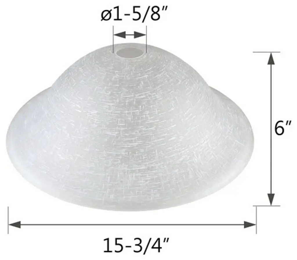 Aspen Creative is dedicated to offering a wide assortment of attractive and well-priced portable lamps, kitchen pendants, vanity wall fixtures, outdoor lighting fixtures, lamp shades, and lamp accessories. We have in-house designers that follow current trends and develop cool new products to meet those trends. Product Detail• Frosted colored replacement glass• 6" hight x 15-3/4" diameter• Our replacement glass shades can be used on an assortment of Torchiere Lamp, Swag Lamp and Pendant• Upgrade and / or change the look for your fixtures with an easy to glass changeAspen Creative Item 23504-01A
