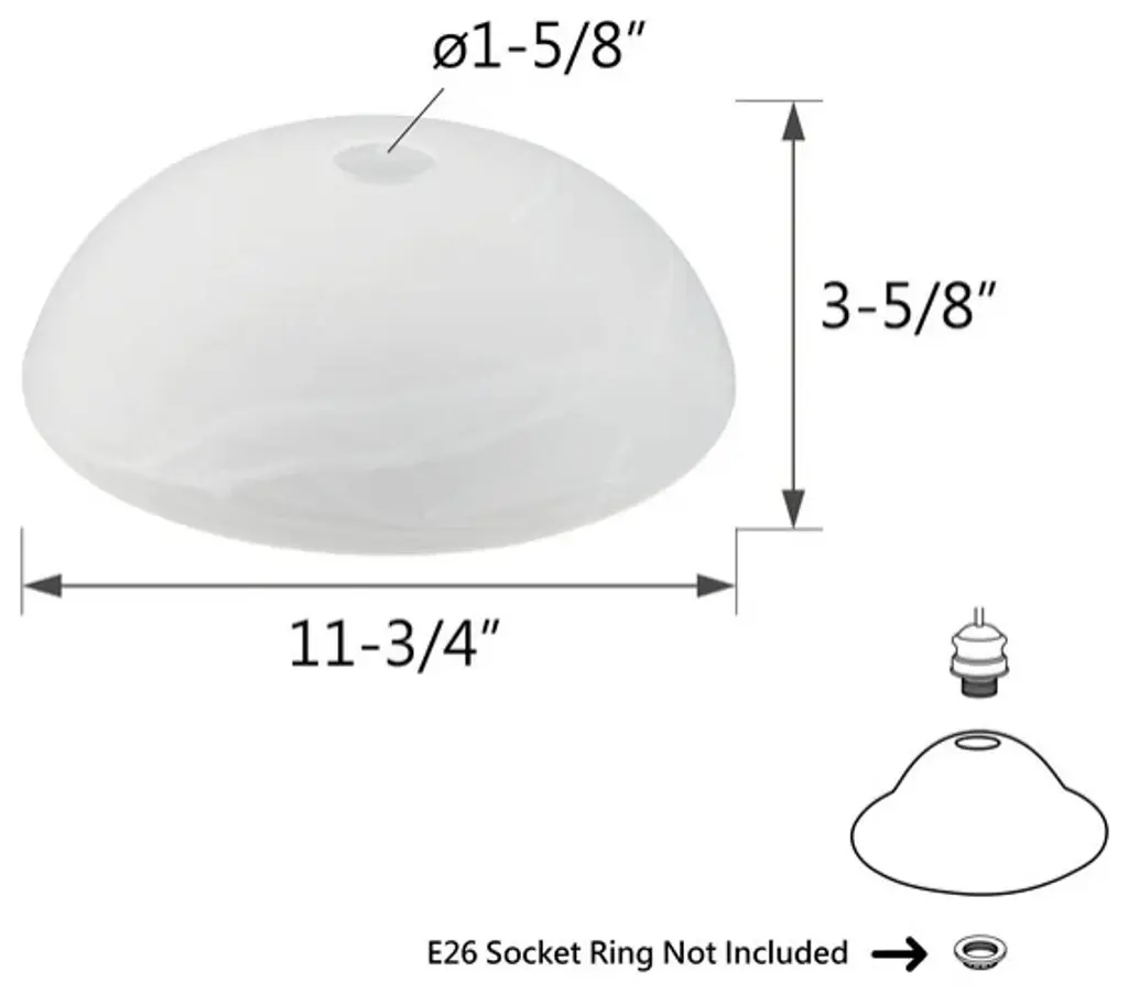 Aspen Creative is dedicated to offering a wide assortment of attractive and well-priced portable lamps, kitchen pendants, vanity wall fixtures, outdoor lighting fixtures, lamp shades, and lamp accessories. We have in-house designers that follow current trends and develop cool new products to meet those trends. Product Detail• Alabaster colored replacement glass• 3-5/8" hight x 11-3/4" diameter• Our replacement glass shades can be used on an assortment of Torchiere Lamp, Swag Lamp and Pendant& Island Fixture• Upgrade and / or change the look for your fixtures with an easy to glass changeAspen Creative Item 23515-11