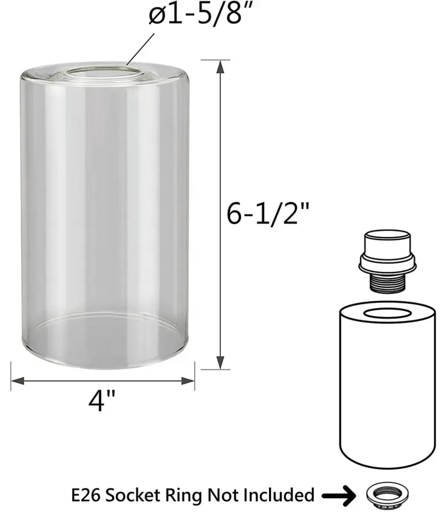 Aspen Creative is dedicated to offering a wide assortment of attractive and well-priced portable lamps, kitchen pendants, vanity wall fixtures, outdoor lighting fixtures, lamp shades, and lamp accessories. We have in-house designers that follow current trends and develop cool new products to meet those trends.Product Detail• Aspen Creative replacement clear seeded cylinder glass shades, 1 pack• 42 mm center hole, 6-1/2" high x 4" diameter• Replacement glass for ceiling fan light kits, bath wall fixtures and wall sconces that require a 42mm center hole• Upgrade and / or change the look for your fixtures with an easy to glass changeAspen Creative Item 23611-01
