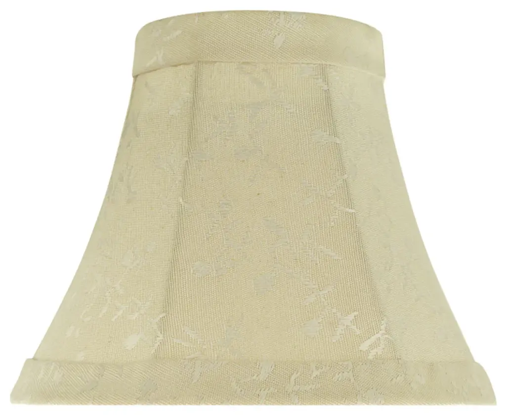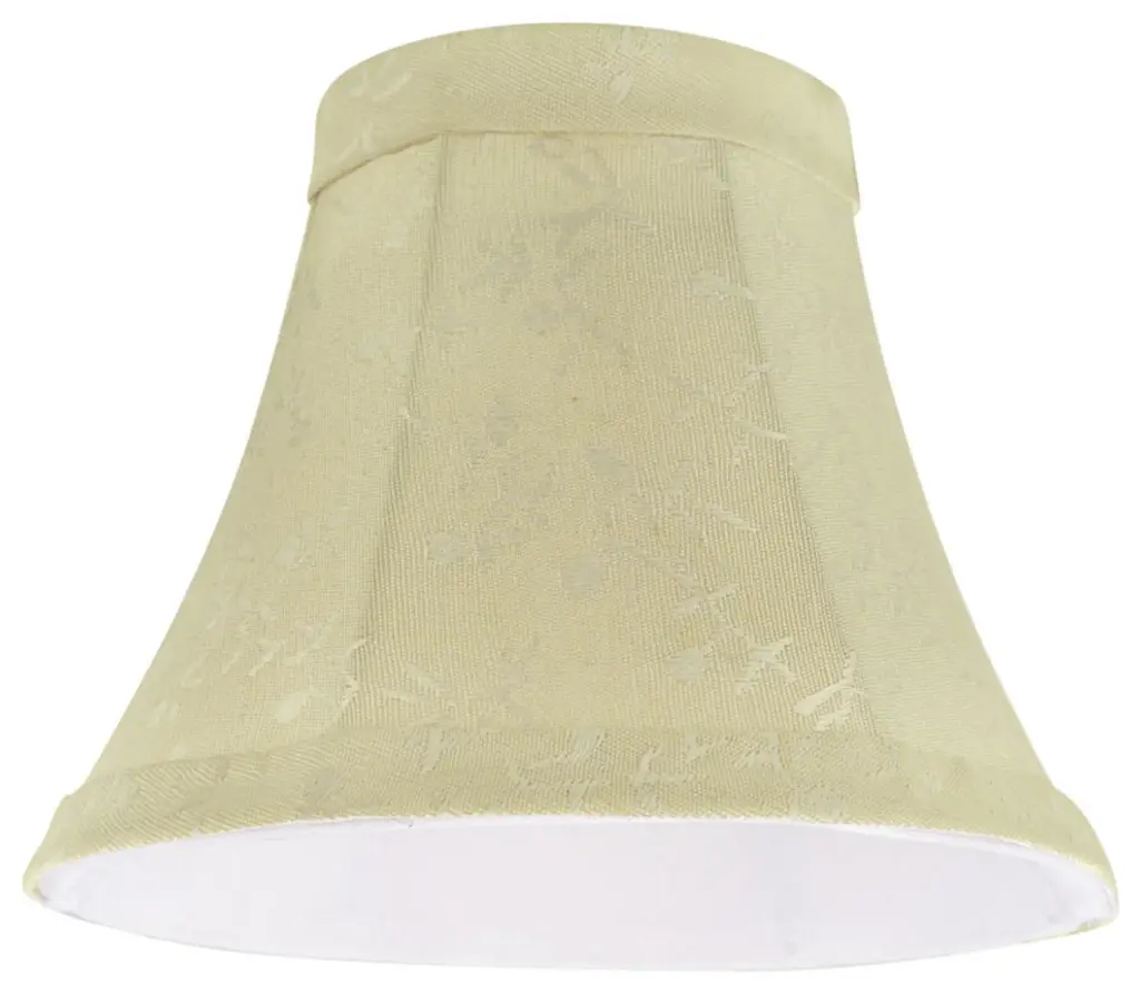 Aspen Creative is dedicated to offering a wide assortment of attractive and well-priced portable lamps, kitchen pendants, vanity wall fixtures, outdoor lighting fixtures, lamp shades, and lamp accessories. We have in-house designers that follow current trends and develop cool new products to meet those trends. Product Detail• Bell Shape Transitional (Mini Chandelier Lamp Shades) in Butter creme• Bell (clip on) Replacement Shade | Jacquard Textured Checkered Patterned Fabric with a Leaf Design and Trim• Clip-on style fitter designed for bare Torpedo chandelier bulbs (bend tip bulbs not recommended) either in candelabra base (E12) or medium base (E26), light bulbs not included• Clip On Lamp Shade Dimensions: 3" top x 6" bottom x 5" slant height