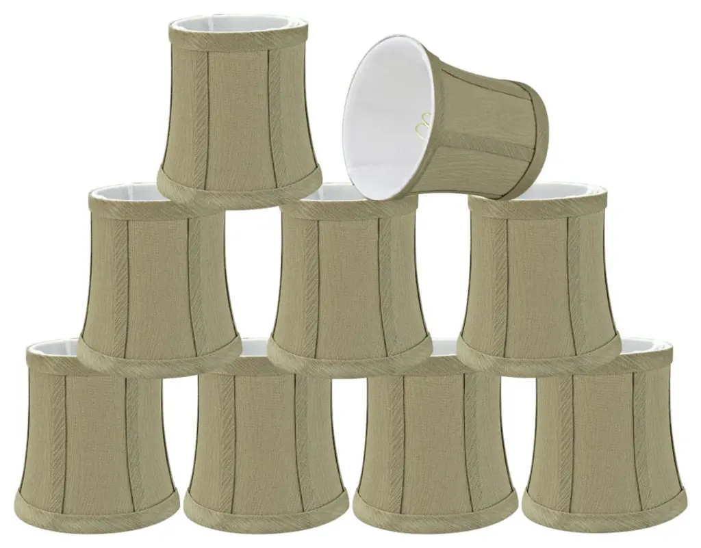 Aspen Creative is dedicated to offering a wide assortment of attractive and well-priced portable lamps, kitchen pendants, vanity wall fixtures, outdoor lighting fixtures, lamp shades, and lamp accessories. We have in-house designers that follow current trends and develop cool new products to meet those trends. Product Detail• Bell Shape Transitional (Mini Chandelier Lamp Shades) in Butter creme• Bell (clip on) Replacement Shade | Linen Fabric and Trim• Clip-on style fitter designed for bare Torpedo chandelier bulbs (bend tip bulbs not recommended) either in candelabra base (E12) or medium base (E26), light bulbs not included• Clip On Lamp Shade Dimensions: 2-1/Clip On Lamp Shade Dimensions: 2" top x 4" bottom x 5" slant height