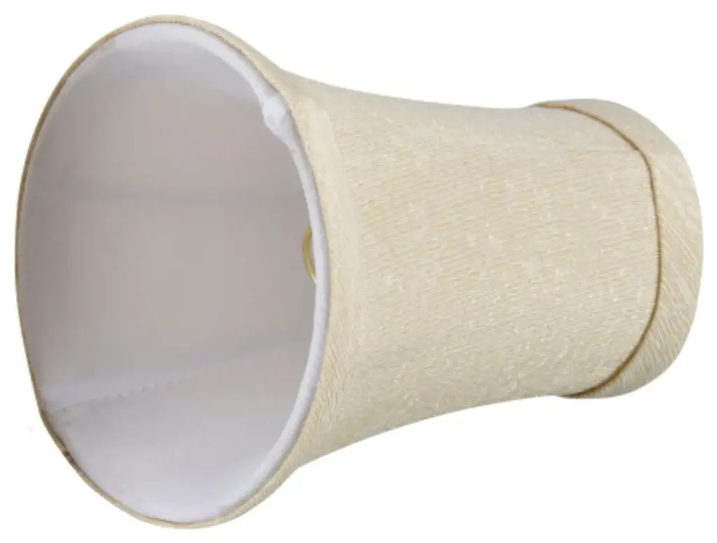 Aspen Creative is dedicated to offering a wide assortment of attractive and well-priced portable lamps, kitchen pendants, vanity wall fixtures, outdoor lighting fixtures, lamp shades, and lamp accessories. We have in-house designers that follow current trends and develop cool new products to meet those trends. Product Detail• Bell Shape Transitional (Mini Chandelier Lamp Shades) in Butter creme• Bell (clip on) Replacement Shade | Jacquard Textured Fabric and Trim• Clip-on style fitter designed for bare Torpedo chandelier bulbs (bend tip bulbs not recommended) either in candelabra base (E12) or medium base (E26), light bulbs not included• Clip On Lamp Shade Dimensions: 2-1/Clip On Lamp Shade Dimensions: 2" top x 4" bottom x 5" slant height
