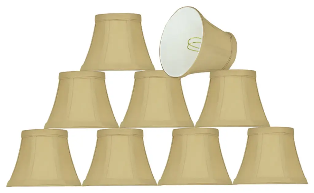 Aspen Creative is dedicated to offering a wide assortment of attractive and well-priced portable lamps, kitchen pendants, vanity wall fixtures, outdoor lighting fixtures, lamp shades, and lamp accessories. We have in-house designers that follow current trends and develop cool new products to meet those trends. Product Detail• Bell Shape Transitional (Mini Chandelier Lamp Shades) in Grey• Bell (clip on) Replacement Shade | Faux Silk Fabric• Clip-on style fitter designed for bare Torpedo chandelier bulbs (bend tip bulbs not recommended) either in candelabra base (E12) or medium base (E26), light bulbs not included• Clip On Lamp Shade Dimensions: 3" top x 6" bottom x 5" slant height