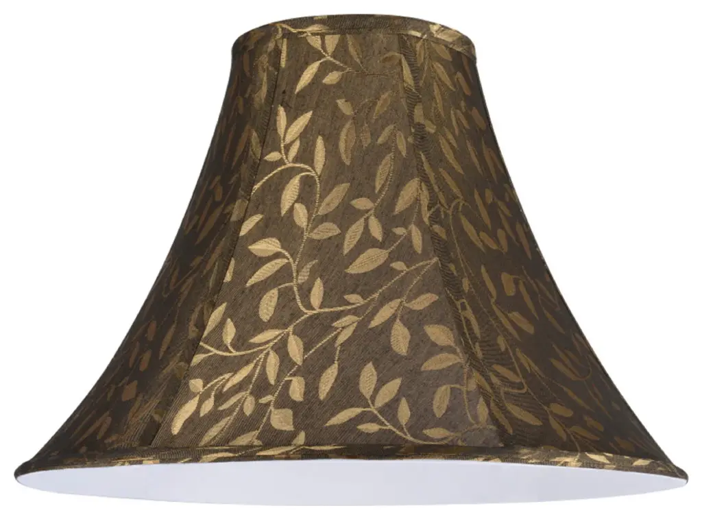 Aspen Creative is dedicated to offering a wide assortment of attractive and well-priced portable lamps, kitchen pendants, vanity wall fixtures, outdoor lighting fixtures, lamp shades, and lamp accessories. We have in-house designers that follow current trends and develop cool new products to meet those trends. Product Detail• 1 pack transitional bell replacement lamp shade• jacquard textured fabric in brown | 6" top x 16" bottom x 12" slant height• Spider construction lamp shade, designed to attach to lamp harp• Applications - For table lamps, accent lamps, vintage lamps, candle stick lamps and kid''s room lamps
