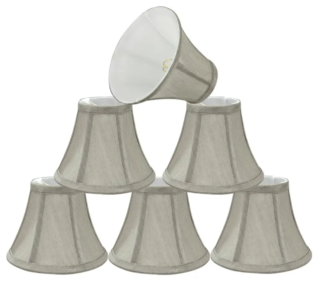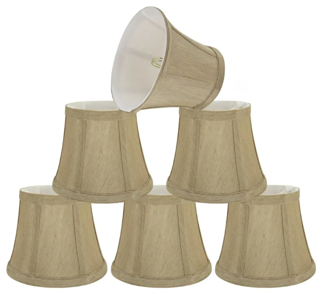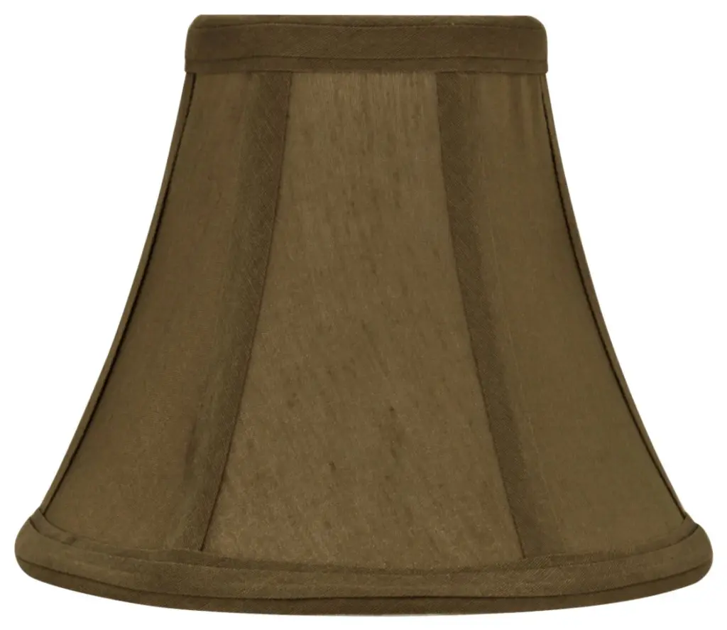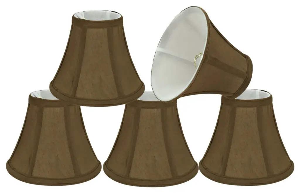 Aspen Creative is dedicated to offering a wide assortment of attractive and well-priced portable lamps, kitchen pendants, vanity wall fixtures, outdoor lighting fixtures, lamp shades, and lamp accessories. We have in-house designers that follow current trends and develop cool new products to meet those trends. Product Detail• Bell Shape Transitional (Mini Chandelier Lamp Shades) in Light Brown• Bell (clip on) Replacement Shade | Faux Silk fabric• Clip-on style fitter designed for bare Torpedo chandelier bulbs (bend tip bulbs not recommended) either in candelabra base (E12) or medium base (E26), light bulbs not included• Clip On Lamp Shade Dimensions: 3" top x 6" bottom x 5" slant height