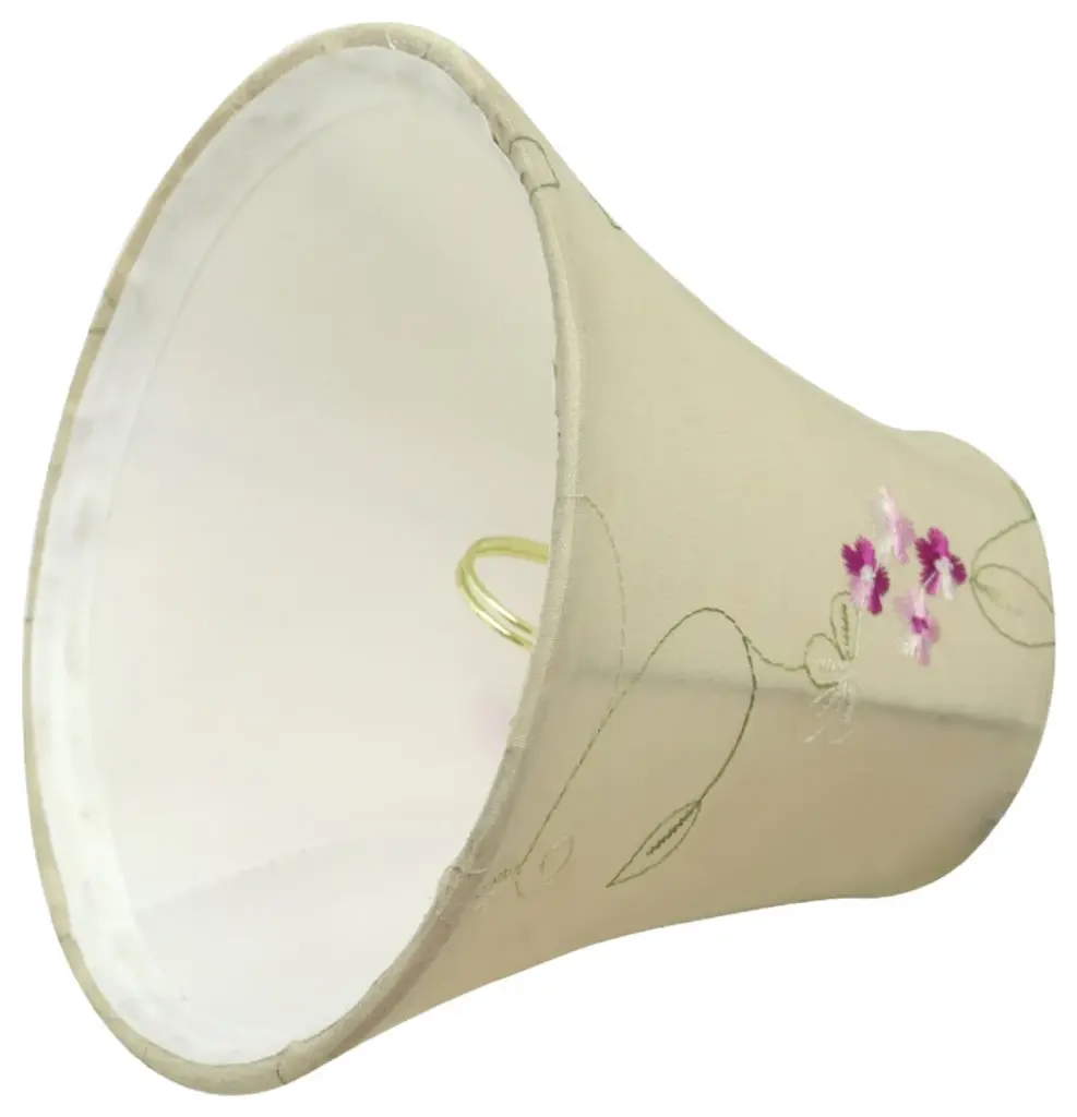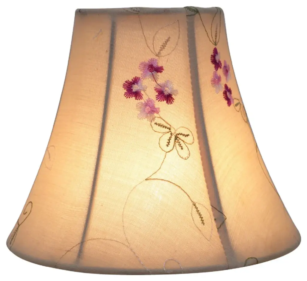 Aspen Creative is dedicated to offering a wide assortment of attractive and well-priced portable lamps, kitchen pendants, vanity wall fixtures, outdoor lighting fixtures, lamp shades, and lamp accessories. We have in-house designers that follow current trends and develop cool new products to meet those trends. Product Detail• Bell Shape Transitional (Mini Chandelier Lamp Shades) in Apricot• Bell (clip on) Replacement Shade | Tetoron Cotton fabric with a Floral Embroidered Design• Clip-on style fitter designed for bare Torpedo chandelier bulbs (bend tip bulbs not recommended) either in candelabra base (E12) or medium base (E26), light bulbs not included• Clip On Lamp Shade Dimensions: 3" top x 6" bottom x 5" slant height