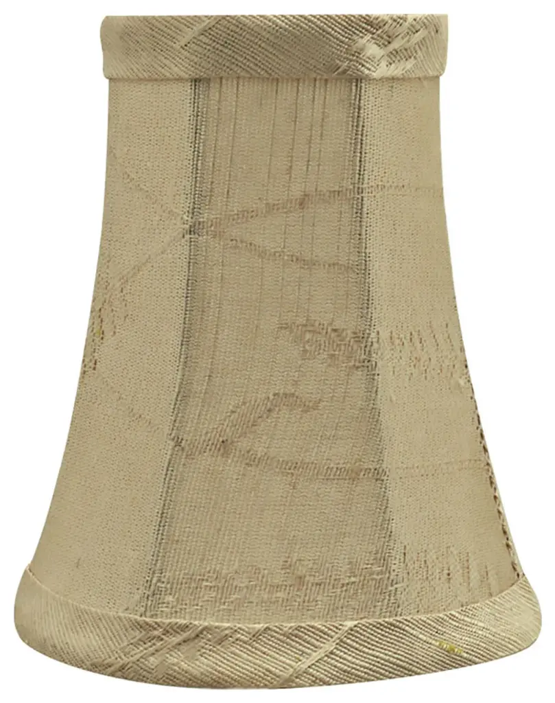 Aspen Creative is dedicated to offering a wide assortment of attractive and well-priced portable lamps, kitchen pendants, vanity wall fixtures, outdoor lighting fixtures, lamp shades, and lamp accessories. We have in-house designers that follow current trends and develop cool new products to meet those trends. Product Detail• Bell Shape Transitional (Mini Chandelier Lamp Shades) in Oatmeal with Wheat design• Bell (clip on) Replacement Shade | Jacquard Textured Fabric• Clip-on style fitter designed for bare Torpedo chandelier bulbs (bend tip bulbs not recommended) either in candelabra base (E12) or medium base (E26), light bulbs not included• Clip On Lamp Shade Dimensions: 2-1/Clip On Lamp Shade Dimensions: 2" top x 4" bottom x 5" slant height