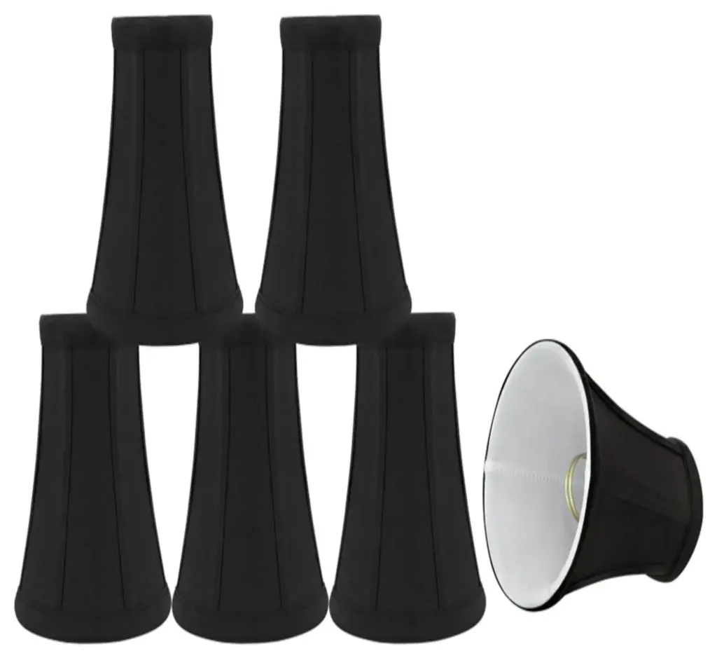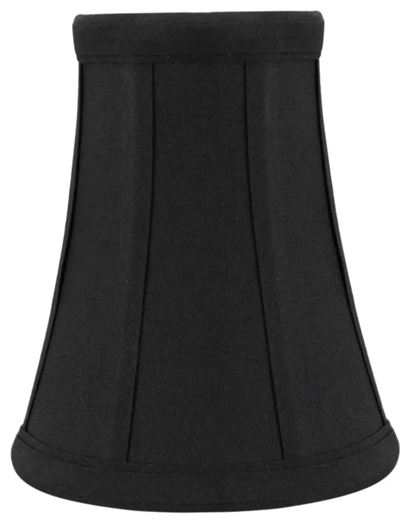 Aspen Creative is dedicated to offering a wide assortment of attractive and well-priced portable lamps, kitchen pendants, vanity wall fixtures, outdoor lighting fixtures, lamp shades, and lamp accessories. We have in-house designers that follow current trends and develop cool new products to meet those trends. Product Detail• Bell Shape Transitional (Mini Chandelier Lamp Shades) in Black• Bell (clip on) Replacement Shade | Tetoron Cotton Fabric• Clip-on style fitter designed for bare Torpedo chandelier bulbs (bend tip bulbs not recommended) either in candelabra base (E12) or medium base (E26), light bulbs not included• Clip On Lamp Shade Dimensions: 2-1/Clip On Lamp Shade Dimensions: 2" top x 4" bottom x 5" slant height