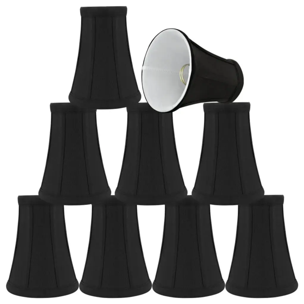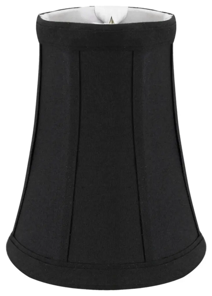 Aspen Creative is dedicated to offering a wide assortment of attractive and well-priced portable lamps, kitchen pendants, vanity wall fixtures, outdoor lighting fixtures, lamp shades, and lamp accessories. We have in-house designers that follow current trends and develop cool new products to meet those trends. Product Detail• Bell Shape Transitional (Mini Chandelier Lamp Shades) in Black• Bell (clip on) Replacement Shade | Tetoron Cotton Fabric• Clip-on style fitter designed for bare Torpedo chandelier bulbs (bend tip bulbs not recommended) either in candelabra base (E12) or medium base (E26), light bulbs not included• Clip On Lamp Shade Dimensions: 2-1/Clip On Lamp Shade Dimensions: 2" top x 4" bottom x 5" slant height