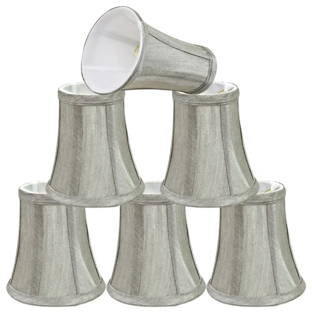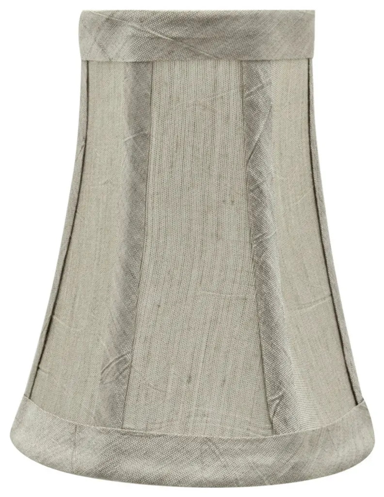 Aspen Creative is dedicated to offering a wide assortment of attractive and well-priced portable lamps, kitchen pendants, vanity wall fixtures, outdoor lighting fixtures, lamp shades, and lamp accessories. We have in-house designers that follow current trends and develop cool new products to meet those trends. Product Detail• Bell Shape Transitional (Mini Chandelier Lamp Shades) in Silver-Grey• Bell (clip on) Replacement Shade | Wrinkle Fabric• Clip-on style fitter designed for bare Torpedo chandelier bulbs (bend tip bulbs not recommended) either in candelabra base (E12) or medium base (E26), light bulbs not included• Clip On Lamp Shade Dimensions: 2-1/Clip On Lamp Shade Dimensions: 2" top x 4" bottom x 5" slant height