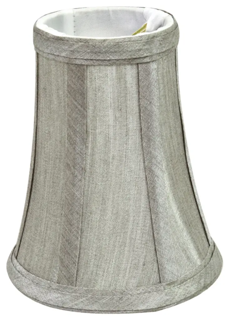Aspen Creative is dedicated to offering a wide assortment of attractive and well-priced portable lamps, kitchen pendants, vanity wall fixtures, outdoor lighting fixtures, lamp shades, and lamp accessories. We have in-house designers that follow current trends and develop cool new products to meet those trends. Product Detail• Bell Shape Transitional (Mini Chandelier Lamp Shades) in Silver Grey• Bell (clip on) Replacement Shade | Faux Silk Fabric• Clip-on style fitter designed for bare Torpedo chandelier bulbs (bend tip bulbs not recommended) either in candelabra base (E12) or medium base (E26), light bulbs not included• Clip On Lamp Shade Dimensions: 2-1/Clip On Lamp Shade Dimensions: 2" top x 4" bottom x 5" slant height