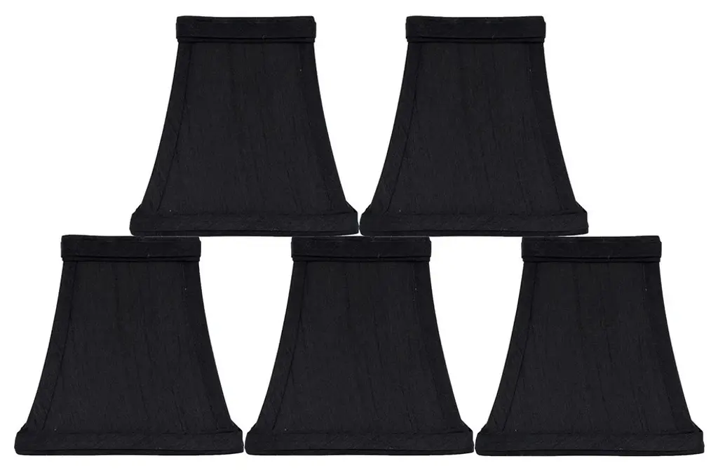 Aspen Creative is dedicated to offering a wide assortment of attractive and well-priced portable lamps, kitchen pendants, vanity wall fixtures, outdoor lighting fixtures, lamp shades, and lamp accessories. We have in-house designers that follow current trends and develop cool new products to meet those trends. Product Detail• Bell Shape Transitional (Mini Chandelier Lamp Shades) in Black• Bell (clip on) Replacement Shade | Tetoron Cotton Fabric• Clip-on style fitter designed for bare Torpedo chandelier bulbs (bend tip bulbs not recommended) either in candelabra base (E12) or medium base (E26), light bulbs not included• Clip On Lamp Shade Dimensions: 3" top x 5" bottom x 4" slant height
