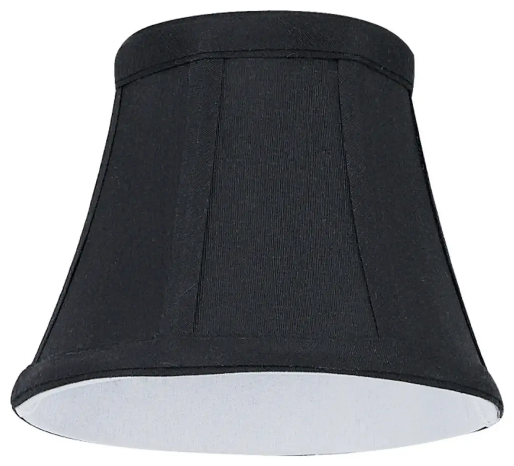 Aspen Creative is dedicated to offering a wide assortment of attractive and well-priced portable lamps, kitchen pendants, vanity wall fixtures, outdoor lighting fixtures, lamp shades, and lamp accessories. We have in-house designers that follow current trends and develop cool new products to meet those trends. Product Detail• Bell Shape Transitional (Mini Chandelier Lamp Shades) in Black• Bell (clip on) Replacement Shade | Faux Silk Fabric• Clip-on style fitter designed for bare Torpedo chandelier bulbs (bend tip bulbs not recommended) either in candelabra base (E12) or medium base (E26), light bulbs not included• Clip On Lamp Shade Dimensions: 3" top x 5" bottom x 4" slant height