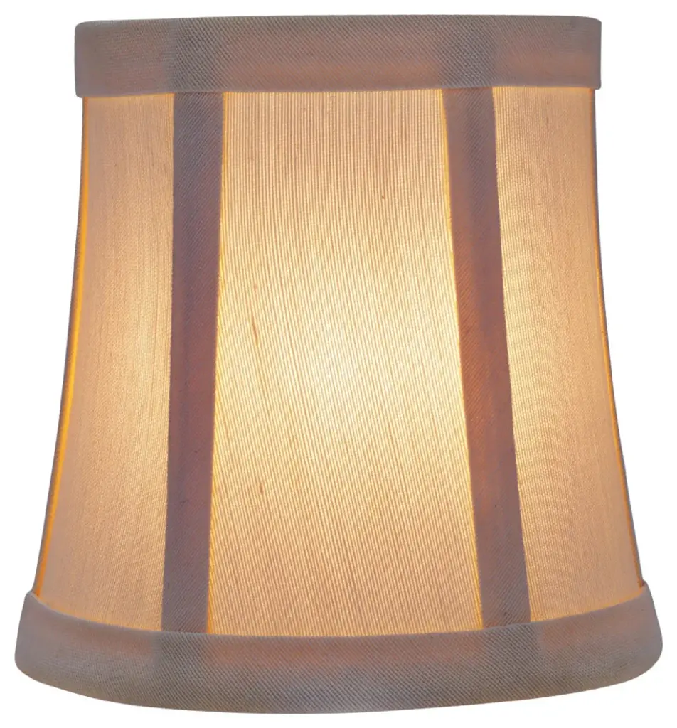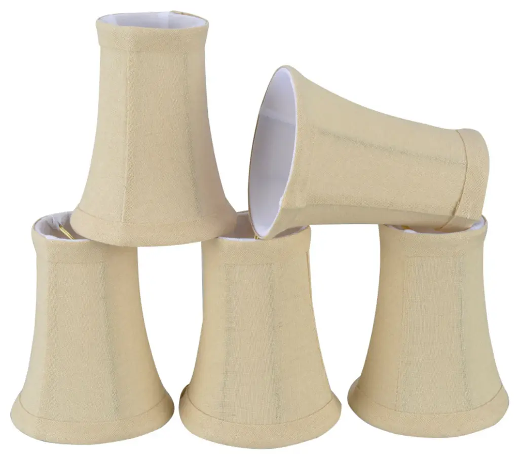 Aspen Creative is dedicated to offering a wide assortment of attractive and well-priced portable lamps, kitchen pendants, vanity wall fixtures, outdoor lighting fixtures, lamp shades, and lamp accessories. We have in-house designers that follow current trends and develop cool new products to meet those trends. Product Detail• Bell Shape Transitional (Mini Chandelier Lamp Shades) in Beige• Bell (clip on) Replacement Shade | Faux Linen Fabric• Clip-on style fitter designed for bare Torpedo chandelier bulbs (bend tip bulbs not recommended) either in candelabra base (E12) or medium base (E26), light bulbs not included• Clip On Lamp Shade Dimensions: 4" top x 5" bottom x 5" slant height