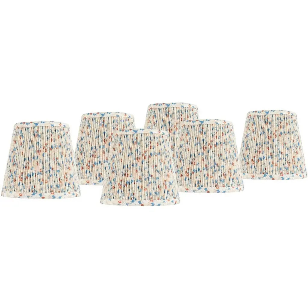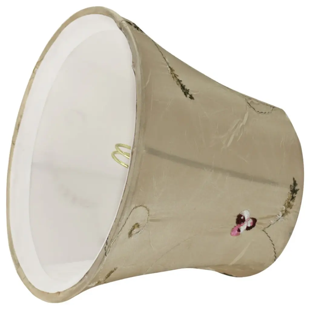 Aspen Creative is dedicated to offering a wide assortment of attractive and well-priced portable lamps, kitchen pendants, vanity wall fixtures, outdoor lighting fixtures, lamp shades, and lamp accessories. We have in-house designers that follow current trends and develop cool new products to meet those trends. Product Detail• Bell Shape Transitional (Mini Chandelier Lamp Shades) in Gold• Bell (clip on) Replacement Shade | Faux silk fabric with floral embroidered design• Clip-on style fitter designed for bare Torpedo chandelier bulbs (bend tip bulbs not recommended) either in candelabra base (E12) or medium base (E26), light bulbs not included• Clip On Lamp Shade Dimensions: 4" top x 6" bottom x 5" slant height