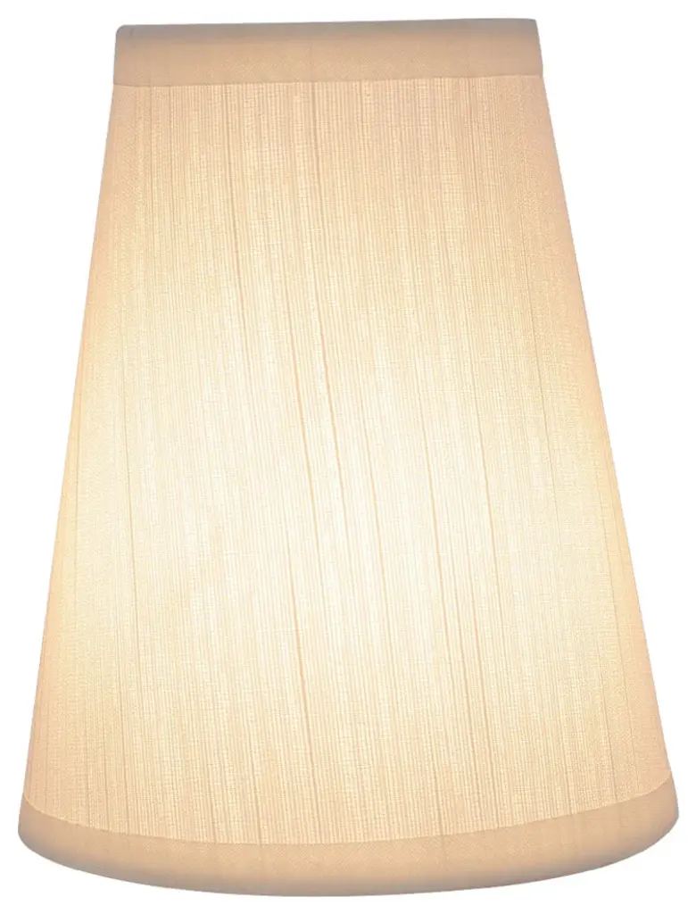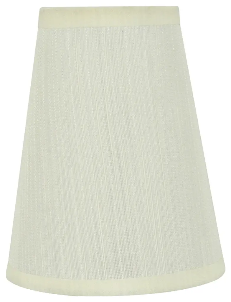 Aspen Creative is dedicated to offering a wide assortment of attractive and well-priced portable lamps, kitchen pendants, vanity wall fixtures, outdoor lighting fixtures, lamp shades, and lamp accessories. We have in-house designers that follow current trends and develop cool new products to meet those trends. Product Detail• Hardback Empire Shape Transitional (Mini Chandelier Lamp Shades) in Off White• Hardback Empire (clip on) Replacement Shade | Gauze Textured Fabric• Clip-on style fitter designed for bare Torpedo chandelier bulbs (bend tip bulbs not recommended) either in candelabra base (E12) or medium base (E26), light bulbs not included• Clip On Lamp Shade Dimensions: 2-1/Clip On Lamp Shade Dimensions: 2" top x 4" bottom x 5" slant height