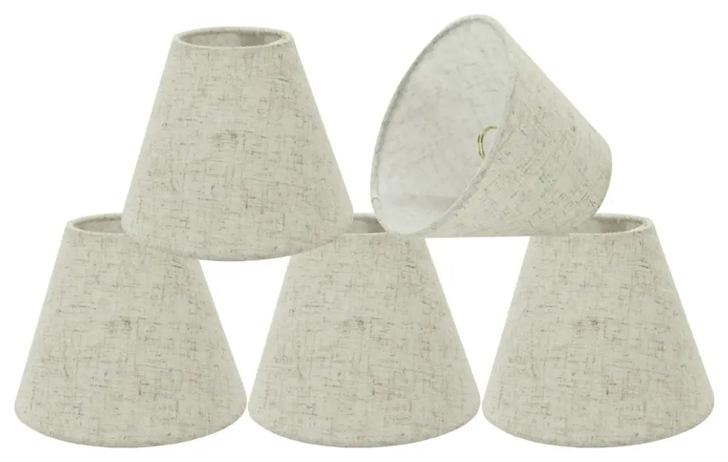 Aspen Creative is dedicated to offering a wide assortment of attractive and well-priced portable lamps, kitchen pendants, vanity wall fixtures, outdoor lighting fixtures, lamp shades, and lamp accessories. We have in-house designers that follow current trends and develop cool new products to meet those trends. Product Detail• Hardback Empire Shape Transitional (Mini Chandelier Lamp Shades) in Oatmeal• Hardback Empire (clip on) Replacement Shade | Linen fabric• Clip-on style fitter designed for bare Torpedo chandelier bulbs (bend tip bulbs not recommended) either in candelabra base (E12) or medium base (E26), light bulbs not included• Clip On Lamp Shade Dimensions: 3" top x 6" bottom x 5" slant height