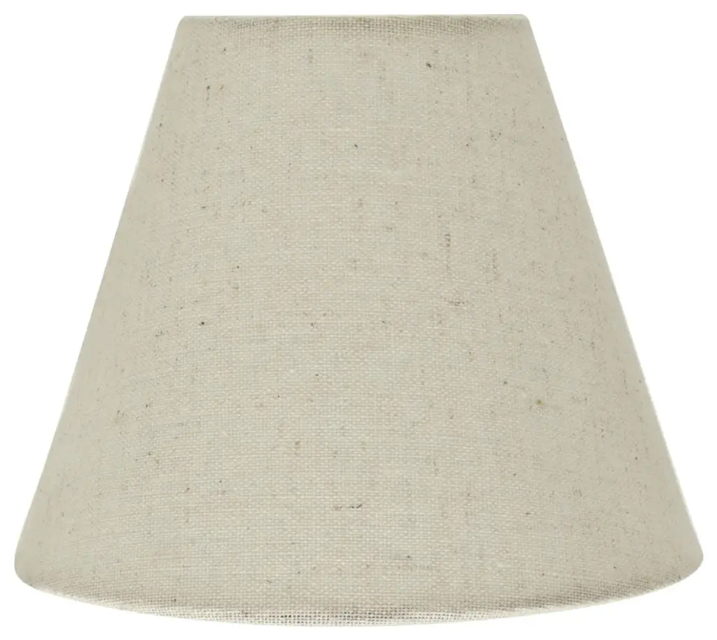 Aspen Creative is dedicated to offering a wide assortment of attractive and well-priced portable lamps, kitchen pendants, vanity wall fixtures, outdoor lighting fixtures, lamp shades, and lamp accessories. We have in-house designers that follow current trends and develop cool new products to meet those trends. Product Detail• Hardback Empire Shape Transitional (Mini Chandelier Lamp Shades) in Oatmeal• Hardback Empire (clip on) Replacement Shade | Linen fabric• Clip-on style fitter designed for bare Torpedo chandelier bulbs (bend tip bulbs not recommended) either in candelabra base (E12) or medium base (E26), light bulbs not included• Clip On Lamp Shade Dimensions: 3" top x 6" bottom x 5" slant height