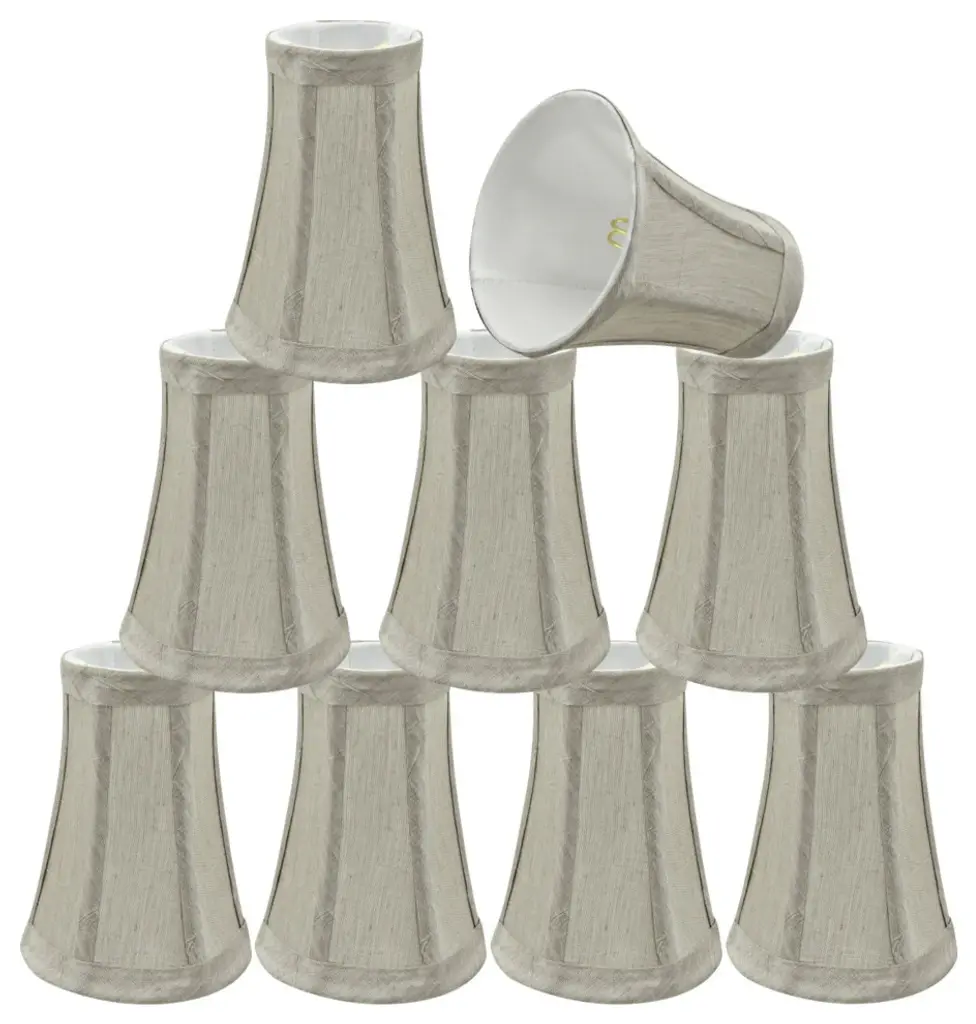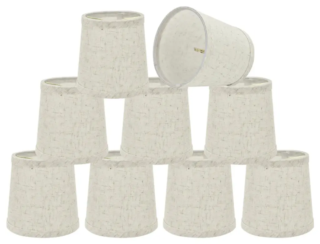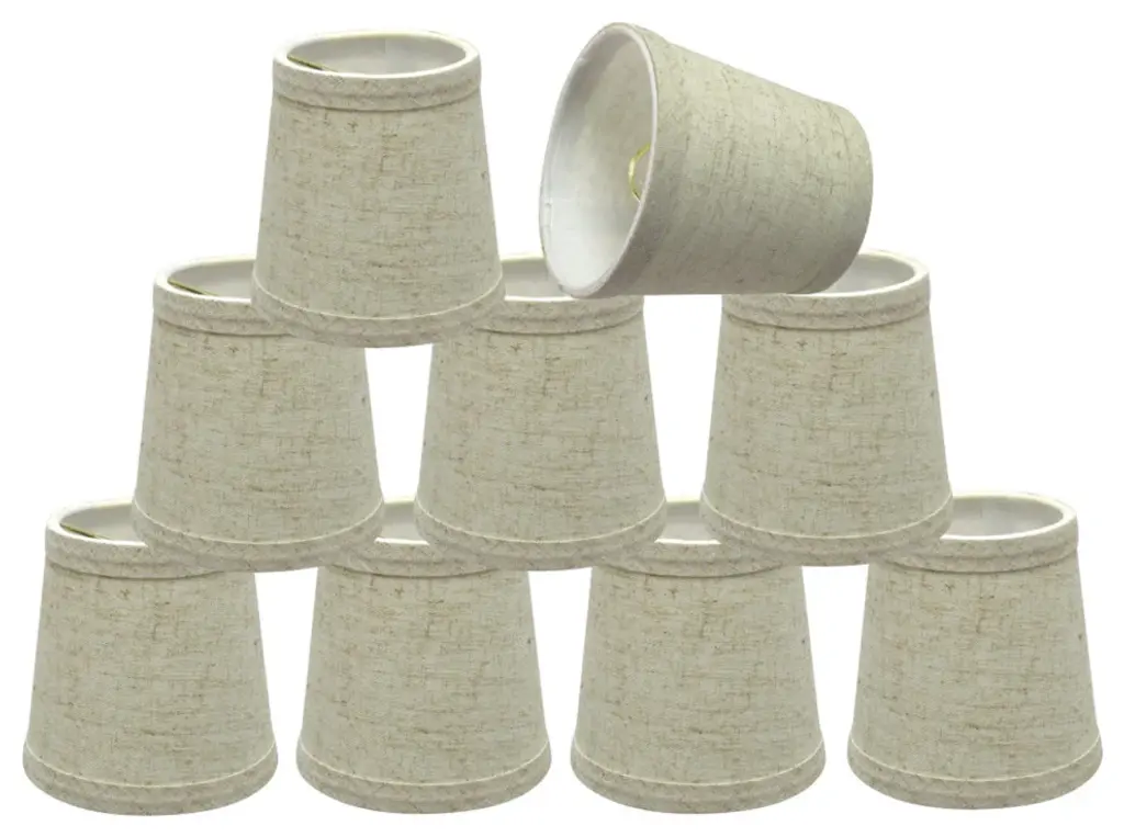Aspen Creative is dedicated to offering a wide assortment of attractive and well-priced portable lamps, kitchen pendants, vanity wall fixtures, outdoor lighting fixtures, lamp shades, and lamp accessories. We have in-house designers that follow current trends and develop cool new products to meet those trends. Product Detail• Hardback Empire Shape Transitional (Mini Chandelier Lamp Shades) in Off-White• Hardback Empire (clip on) Replacement Shade | Linen fabric• Clip-on style fitter designed for bare Torpedo chandelier bulbs (bend tip bulbs not recommended) either in candelabra base (E12) or medium base (E26), light bulbs not included• Clip On Lamp Shade Dimensions: 3" top x 6" bottom x 5" slant height