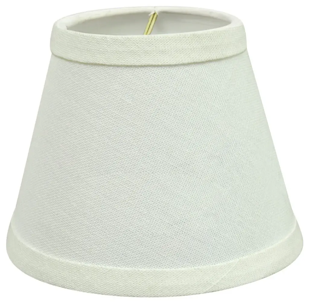 Aspen Creative is dedicated to offering a wide assortment of attractive and well-priced portable lamps, kitchen pendants, vanity wall fixtures, outdoor lighting fixtures, lamp shades, and lamp accessories. We have in-house designers that follow current trends and develop cool new products to meet those trends. Product Detail• Hardback Empire Shape Transitional (Mini Chandelier Lamp Shades) in White• Hardback Empire (clip on) Replacement Shade | Linen fabric• Clip-on style fitter designed for bare Torpedo chandelier bulbs (bend tip bulbs not recommended) either in candelabra base (E12) or medium base (E26), light bulbs not included• Clip On Lamp Shade Dimensions: 3" top x 5" bottom x 4" slant height