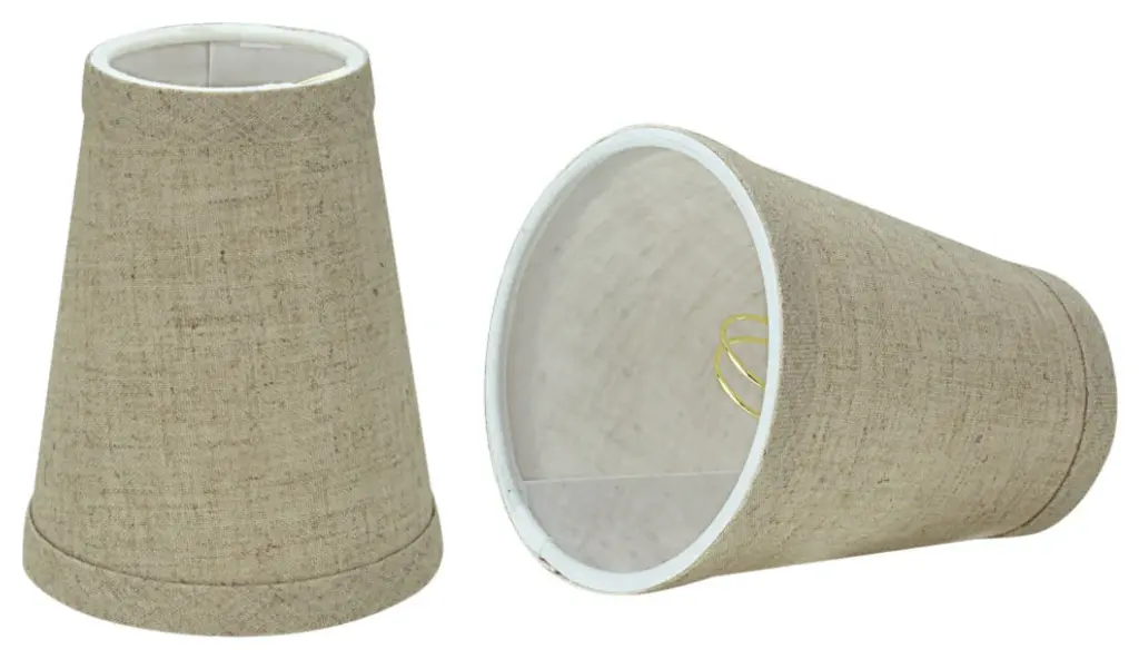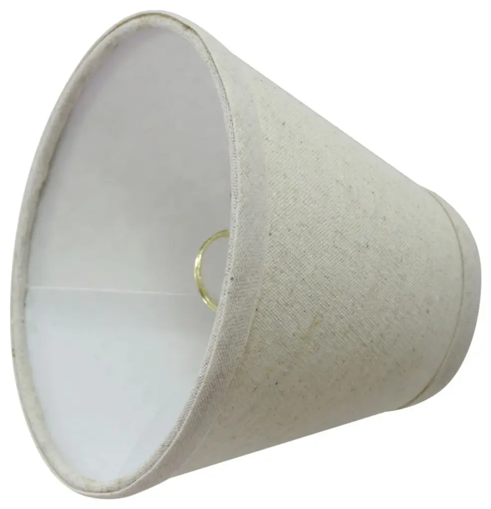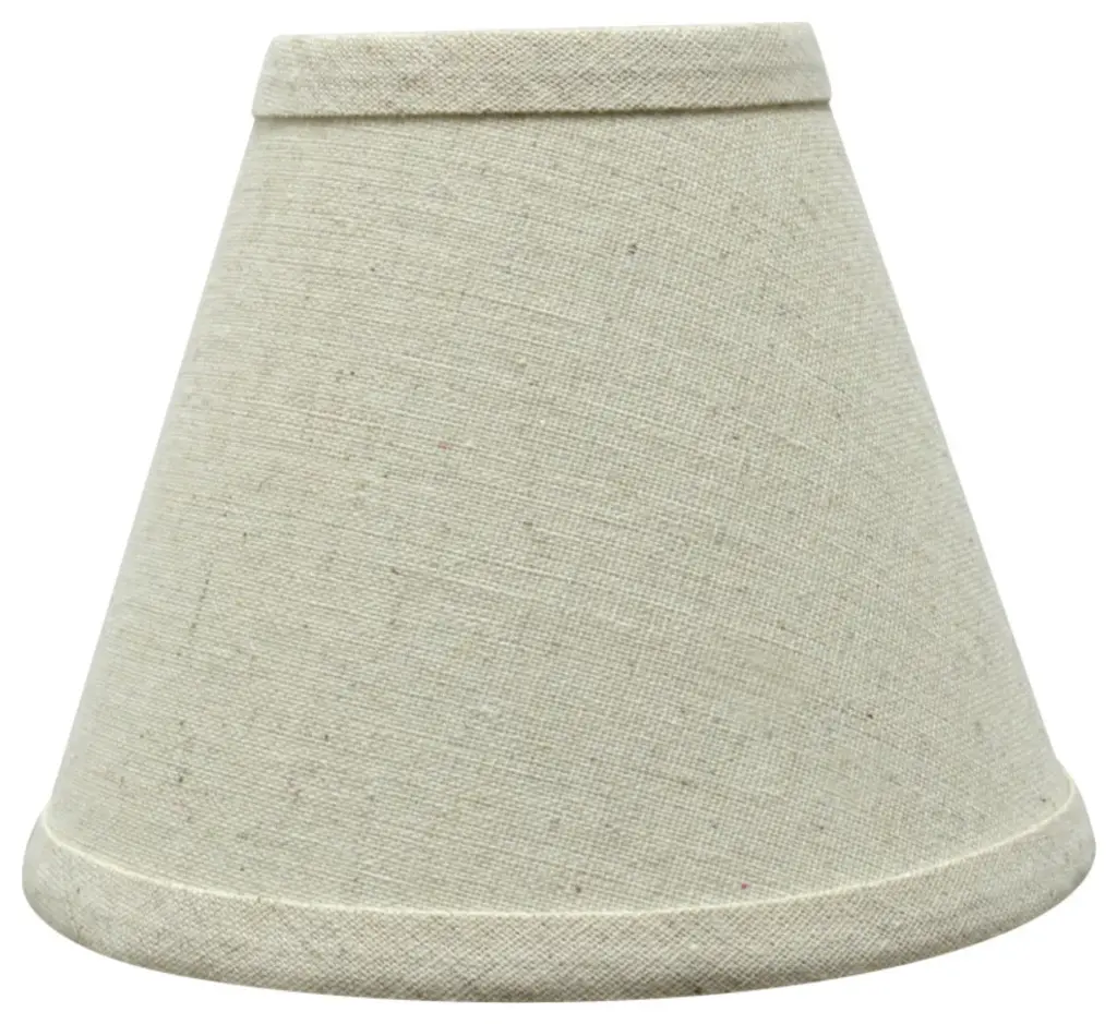 Aspen Creative is dedicated to offering a wide assortment of attractive and well-priced portable lamps, kitchen pendants, vanity wall fixtures, outdoor lighting fixtures, lamp shades, and lamp accessories. We have in-house designers that follow current trends and develop cool new products to meet those trends. Product Detail• Hardback Empire Shape Transitional (Mini Chandelier Lamp Shades) in Oatmeal• Hardback Empire (clip on) Replacement Shade | Linen fabric with trim• Clip-on style fitter designed for bare Torpedo chandelier bulbs (bend tip bulbs not recommended) either in candelabra base (E12) or medium base (E26), light bulbs not included• Clip On Lamp Shade Dimensions: 3" top x 6" bottom x 5" slant height