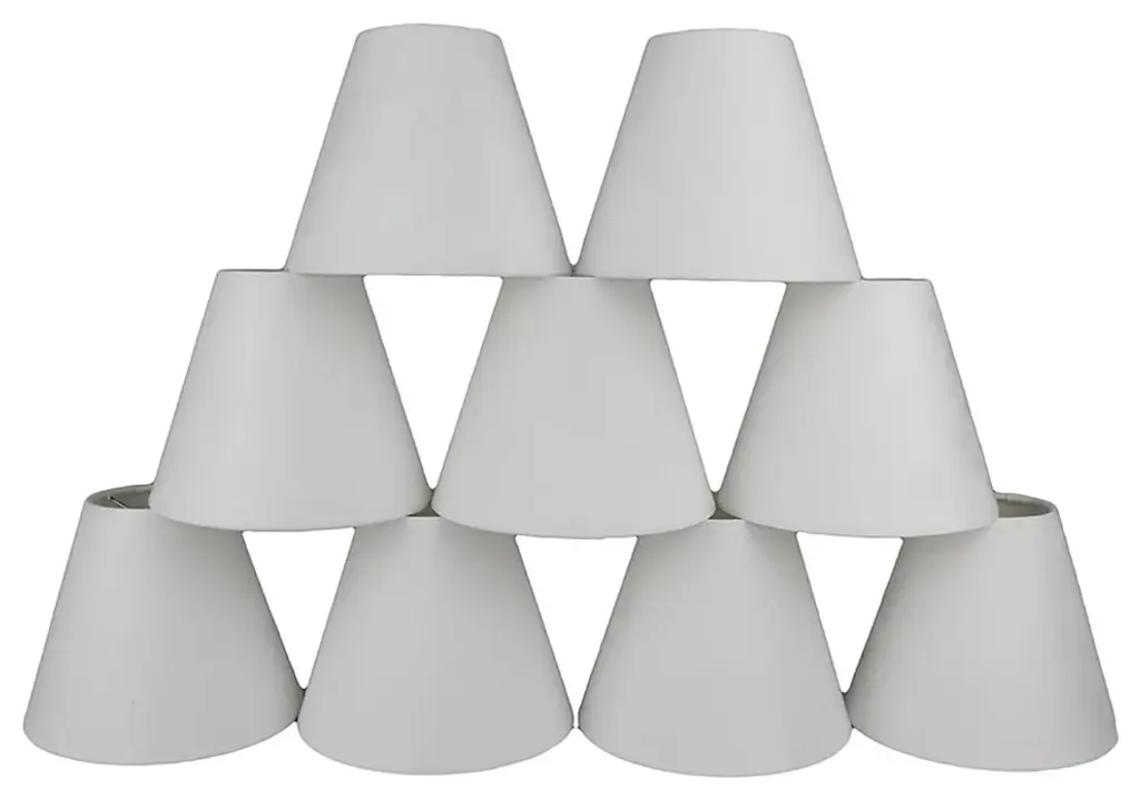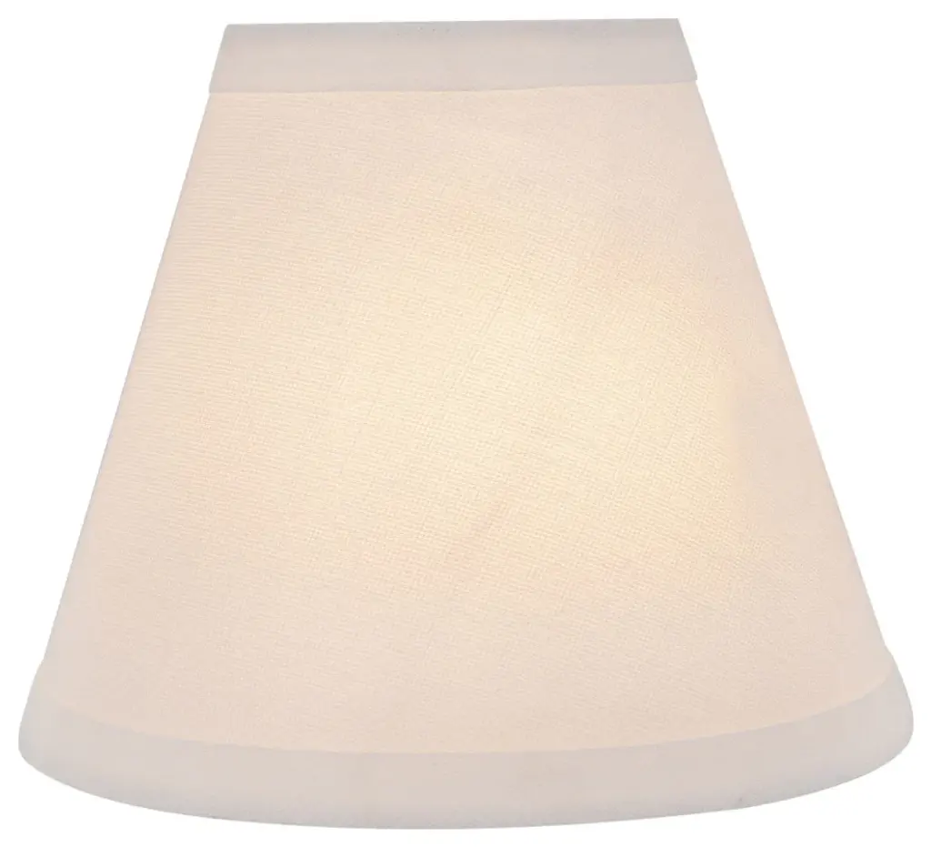 Aspen Creative is dedicated to offering a wide assortment of attractive and well-priced portable lamps, kitchen pendants, vanity wall fixtures, outdoor lighting fixtures, lamp shades, and lamp accessories. We have in-house designers that follow current trends and develop cool new products to meet those trends. Product Detail• Hardback Empire Shape Transitional (Mini Chandelier Lamp Shades) in Off White• Hardback Empire (clip on) Replacement Shade | Faux Linen fabric with trim• Clip-on style fitter designed for bare Torpedo chandelier bulbs (bend tip bulbs not recommended) either in candelabra base (E12) or medium base (E26), light bulbs not included• Clip On Lamp Shade Dimensions: 3" top x 6" bottom x 5" slant height