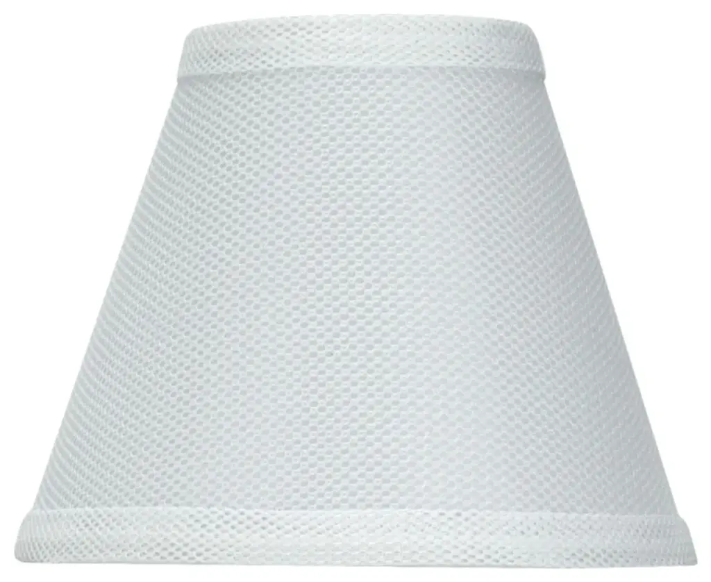 Aspen Creative is dedicated to offering a wide assortment of attractive and well-priced portable lamps, kitchen pendants, vanity wall fixtures, outdoor lighting fixtures, lamp shades, and lamp accessories. We have in-house designers that follow current trends and develop cool new products to meet those trends. Product Detail• Hardback Empire Shape Transitional (Mini Chandelier Lamp Shades) in White• Hardback Empire (clip on) Replacement Shade | Network Fabric• Clip-on style fitter designed for bare Torpedo chandelier bulbs (bend tip bulbs not recommended) either in candelabra base (E12) or medium base (E26), light bulbs not included• Clip On Lamp Shade Dimensions: 3" top x 6" bottom x 5" slant height