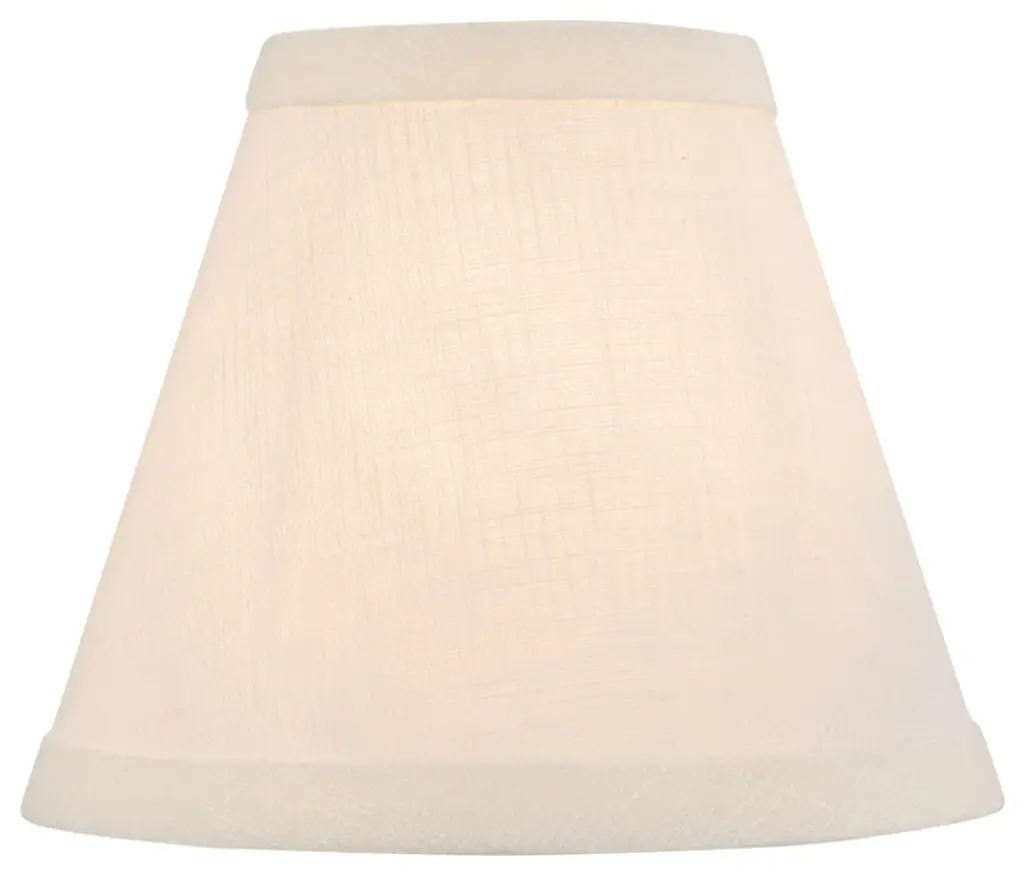 Aspen Creative is dedicated to offering a wide assortment of attractive and well-priced portable lamps, kitchen pendants, vanity wall fixtures, outdoor lighting fixtures, lamp shades, and lamp accessories. We have in-house designers that follow current trends and develop cool new products to meet those trends. Product Detail• Hardback Empire Shape Transitional (Mini Chandelier Lamp Shades) in Off White• Hardback Empire (clip on) Replacement Shade | Linen Fabric• Clip-on style fitter designed for bare Torpedo chandelier bulbs (bend tip bulbs not recommended) either in candelabra base (E12) or medium base (E26), light bulbs not included• Clip On Lamp Shade Dimensions: 3" top x 6" bottom x 5" slant height