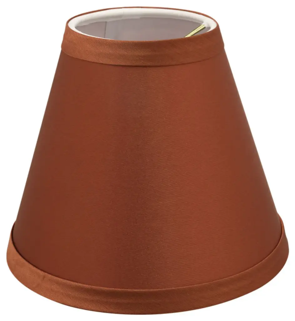 Aspen Creative is dedicated to offering a wide assortment of attractive and well-priced portable lamps, kitchen pendants, vanity wall fixtures, outdoor lighting fixtures, lamp shades, and lamp accessories. We have in-house designers that follow current trends and develop cool new products to meet those trends. Product Detail• Hardback Empire Shape Transitional (Mini Chandelier Lamp Shades) in Redwood• Hardback Empire (clip on) Replacement Shade | Sateen Fabric• Clip-on style fitter designed for bare Torpedo chandelier bulbs (bend tip bulbs not recommended) either in candelabra base (E12) or medium base (E26), light bulbs not included• Clip On Lamp Shade Dimensions: 3" top x 6" bottom x 5" slant height