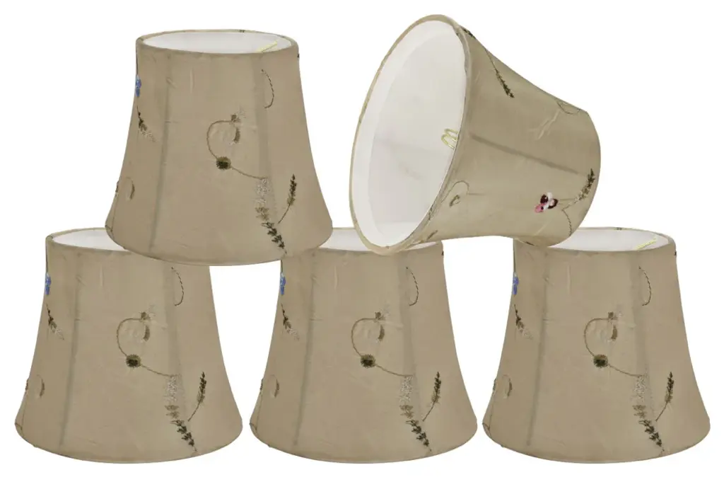 Aspen Creative is dedicated to offering a wide assortment of attractive and well-priced portable lamps, kitchen pendants, vanity wall fixtures, outdoor lighting fixtures, lamp shades, and lamp accessories. We have in-house designers that follow current trends and develop cool new products to meet those trends. Product Detail• Hardback Empire Shape Transitional (Mini Chandelier Lamp Shades) in White• Hardback Empire (clip on) Replacement Shade | Gauze Fabic with Embroidered Design• Clip-on style fitter designed for bare Torpedo chandelier bulbs (bend tip bulbs not recommended) either in candelabra base (E12) or medium base (E26), light bulbs not included• Clip On Lamp Shade Dimensions: 3" top x 6" bottom x 5" slant height