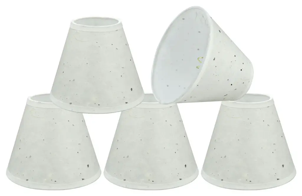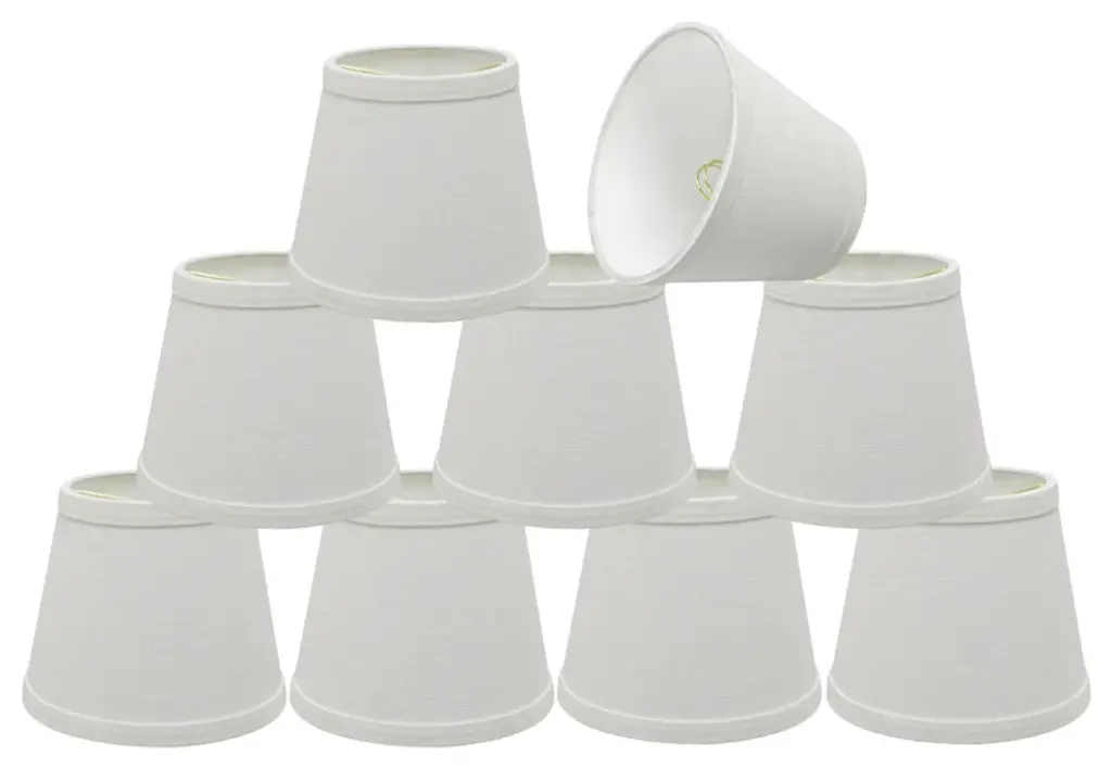 Aspen Creative is dedicated to offering a wide assortment of attractive and well-priced portable lamps, kitchen pendants, vanity wall fixtures, outdoor lighting fixtures, lamp shades, and lamp accessories. We have in-house designers that follow current trends and develop cool new products to meet those trends. Product Detail• Hardback Empire Shape Transitional (Mini Chandelier Lamp Shades) in Off White• Hardback Empire (clip on) Replacement Shade | Paper• Clip-on style fitter designed for bare Torpedo chandelier bulbs (bend tip bulbs not recommended) either in candelabra base (E12) or medium base (E26), light bulbs not included• Clip On Lamp Shade Dimensions: 3" top x 6" bottom x 5" slant height