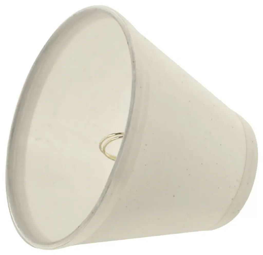 Aspen Creative is dedicated to offering a wide assortment of attractive and well-priced portable lamps, kitchen pendants, vanity wall fixtures, outdoor lighting fixtures, lamp shades, and lamp accessories. We have in-house designers that follow current trends and develop cool new products to meet those trends. Product Detail• Hardback Empire Shape Transitional (Mini Chandelier Lamp Shades) in Off White Cotton• Hardback Empire (clip on) Replacement Shade | Cotton Fabric• Clip-on style fitter designed for bare Torpedo chandelier bulbs (bend tip bulbs not recommended) either in candelabra base (E12) or medium base (E26), light bulbs not included• Clip On Lamp Shade Dimensions: 3" top x 6" bottom x 5" slant height