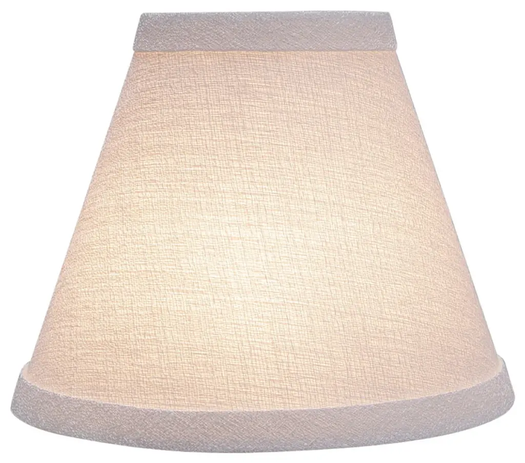 Aspen Creative is dedicated to offering a wide assortment of attractive and well-priced portable lamps, kitchen pendants, vanity wall fixtures, outdoor lighting fixtures, lamp shades, and lamp accessories. We have in-house designers that follow current trends and develop cool new products to meet those trends. Product Detail• Hardback Empire Shape Transitional (Mini Chandelier Lamp Shades) in Pearl Linen• Hardback Empire (clip on) Replacement Shade | Faux linen Fabric• Clip-on style fitter designed for bare Torpedo chandelier bulbs (bend tip bulbs not recommended) either in candelabra base (E12) or medium base (E26), light bulbs not included• Clip On Lamp Shade Dimensions: 3" top x 6" bottom x 5" slant height