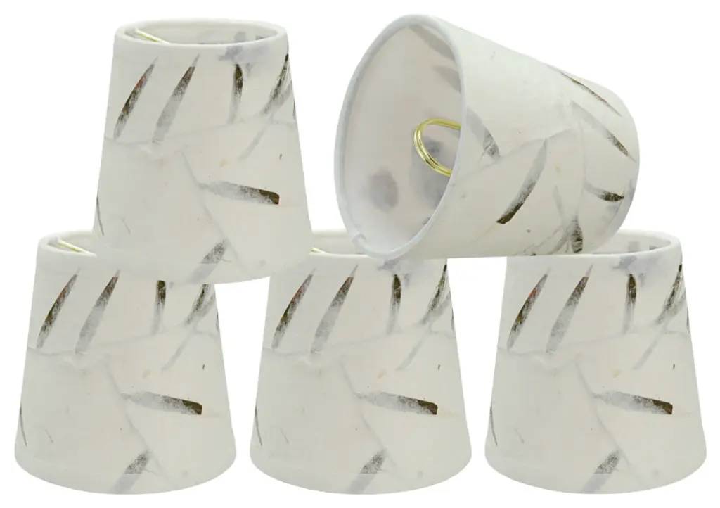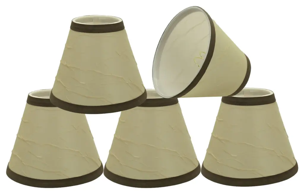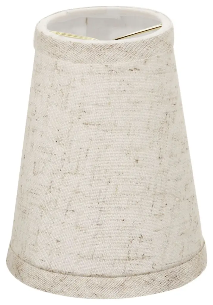 Aspen Creative is dedicated to offering a wide assortment of attractive and well-priced portable lamps, kitchen pendants, vanity wall fixtures, outdoor lighting fixtures, lamp shades, and lamp accessories. We have in-house designers that follow current trends and develop cool new products to meet those trends. Product Detail• Hardback Empire Shape Transitional (Mini Chandelier Lamp Shades) in Flaxen• Hardback Empire (clip on) Replacement Shade | Linen Fabric• Clip-on style fitter designed for bare Torpedo chandelier bulbs (bend tip bulbs not recommended) either in candelabra base (E12) or medium base (E26), light bulbs not included• Clip On Lamp Shade Dimensions: 2-1/Clip On Lamp Shade Dimensions: 2" top x 4" bottom x 5" slant height