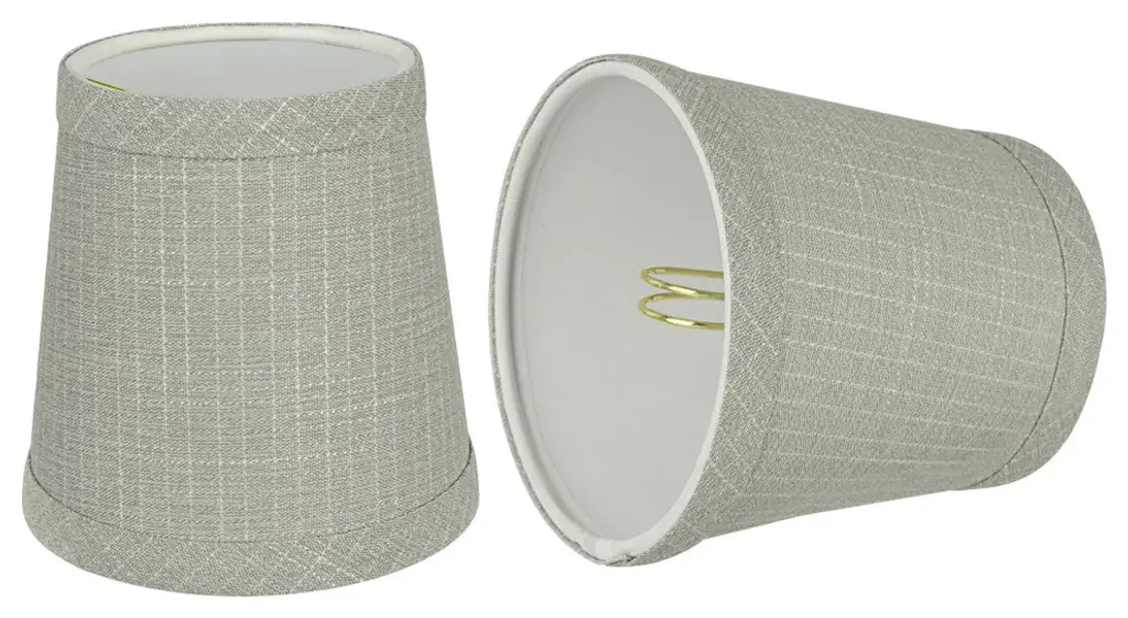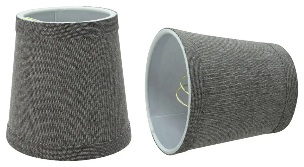 Aspen Creative is dedicated to offering a wide assortment of attractive and well-priced portable lamps, kitchen pendants, vanity wall fixtures, outdoor lighting fixtures, lamp shades, and lamp accessories. We have in-house designers that follow current trends and develop cool new products to meet those trends. Product Detail• Hardback Empire Shape Transitional (Mini Chandelier Lamp Shades) in Grey• Hardback Empire (clip on) Replacement Shade | Textured Fabric• Clip-on style fitter designed for bare Torpedo chandelier bulbs (bend tip bulbs not recommended) either in candelabra base (E12) or medium base (E26), light bulbs not included• Clip On Lamp Shade Dimensions: 2-1/Clip On Lamp Shade Dimensions: 2" top x 4" bottom x 5" slant height