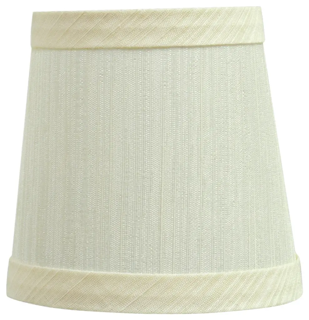 Aspen Creative is dedicated to offering a wide assortment of attractive and well-priced portable lamps, kitchen pendants, vanity wall fixtures, outdoor lighting fixtures, lamp shades, and lamp accessories. We have in-house designers that follow current trends and develop cool new products to meet those trends. Product Detail• Hardback Empire Shape Transitional (Mini Chandelier Lamp Shades) in Eggshell• Hardback Empire (clip on) Replacement Shade | Gauze textured Fabric• Clip-on style fitter designed for bare Torpedo chandelier bulbs (bend tip bulbs not recommended) either in candelabra base (E12) or medium base (E26), light bulbs not included• Clip On Lamp Shade Dimensions: 3" top x 4" bottom x 4" slant height