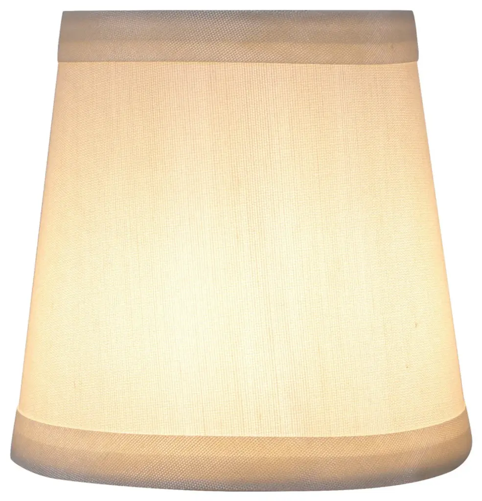 Aspen Creative is dedicated to offering a wide assortment of attractive and well-priced portable lamps, kitchen pendants, vanity wall fixtures, outdoor lighting fixtures, lamp shades, and lamp accessories. We have in-house designers that follow current trends and develop cool new products to meet those trends. Product Detail• Hardback Empire Shape Transitional (Mini Chandelier Lamp Shades) in Off White• Hardback Empire (clip on) Replacement Shade | Faux silk Fabric• Clip-on style fitter designed for bare Torpedo chandelier bulbs (bend tip bulbs not recommended) either in candelabra base (E12) or medium base (E26), light bulbs not included• Clip On Lamp Shade Dimensions: 3" top x 4" bottom x 4" slant height