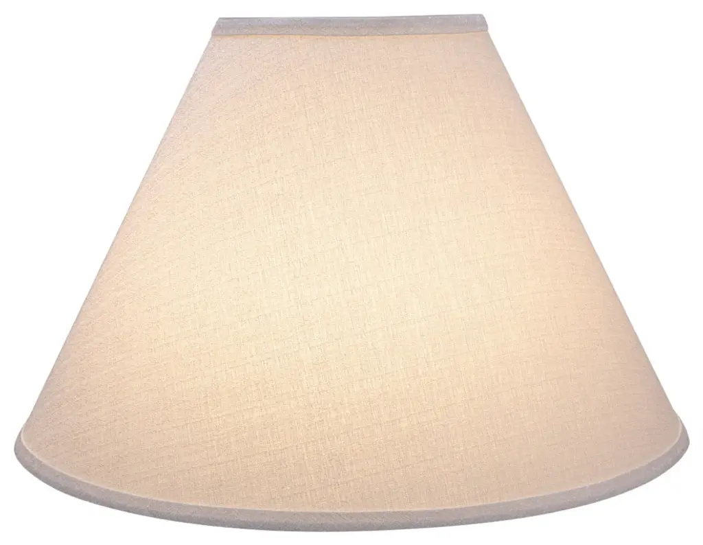 Aspen Creative is dedicated to offering a wide assortment of attractive and well-priced portable lamps, kitchen pendants, vanity wall fixtures, outdoor lighting fixtures, lamp shades, and lamp accessories. We have in-house designers that follow current trends and develop cool new products to meet those trends. Product Detail• 1 pack transitional Hardback Empire replacement lamp shade• Faux Linen Fabric in Off White | 7" top x 18" bottom x 12 1/2" slant height• Spider construction designed to attach to lamp harp• Our hardback shades use Virgin Styrene backing board to produce a warm, natural & smooth light more appealing than shades made with recycled Styrene board that can crack & yellow over time.• Applications - For table lamps, accent lamps, vintage lamps, candle stick lamps and kid''s room lamps