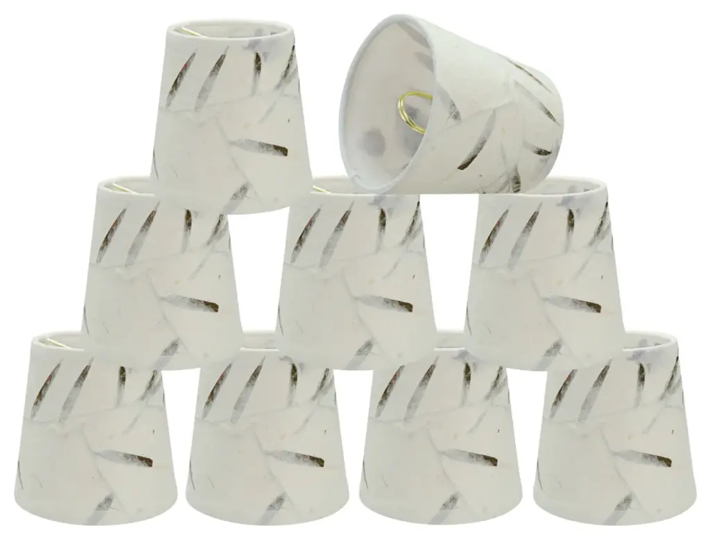 Aspen Creative is dedicated to offering a wide assortment of attractive and well-priced portable lamps, kitchen pendants, vanity wall fixtures, outdoor lighting fixtures, lamp shades, and lamp accessories. We have in-house designers that follow current trends and develop cool new products to meet those trends. Product Detail• Hardback Empire Shape Transitional (Mini Chandelier Lamp Shades) in Grey & Black• Hardback Empire (clip on) Replacement Shade | Synthetic Fabric with Striped Pattern• Clip-on style fitter designed for bare Torpedo chandelier bulbs (bend tip bulbs not recommended) either in candelabra base (E12) or medium base (E26), light bulbs not included• Clip On Lamp Shade Dimensions: 4" top x 5" bottom x 5" slant height