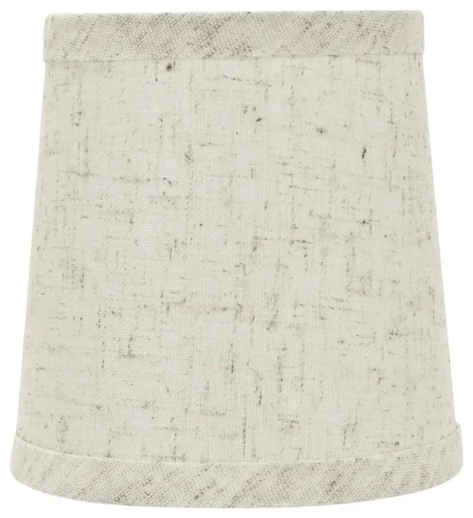 Aspen Creative is dedicated to offering a wide assortment of attractive and well-priced portable lamps, kitchen pendants, vanity wall fixtures, outdoor lighting fixtures, lamp shades, and lamp accessories. We have in-house designers that follow current trends and develop cool new products to meet those trends. Product Detail• Hardback Empire Shape Transitional (Mini Chandelier Lamp Shades) in Flaxen• Hardback Empire (clip on) Replacement Shade | Linen Fabric• Clip-on style fitter designed for bare Torpedo chandelier bulbs (bend tip bulbs not recommended) either in candelabra base (E12) or medium base (E26), light bulbs not included• Clip On Lamp Shade Dimensions: 4" top x 5" bottom x 5" slant height
