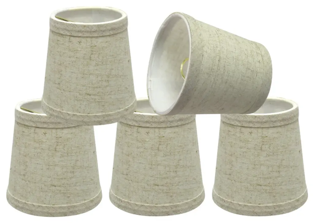 Aspen Creative is dedicated to offering a wide assortment of attractive and well-priced portable lamps, kitchen pendants, vanity wall fixtures, outdoor lighting fixtures, lamp shades, and lamp accessories. We have in-house designers that follow current trends and develop cool new products to meet those trends. Product Detail• Hardback Empire Shape Transitional (Mini Chandelier Lamp Shades) in Flaxen• Hardback Empire (clip on) Replacement Shade | Linen Fabric• Clip-on style fitter designed for bare Torpedo chandelier bulbs (bend tip bulbs not recommended) either in candelabra base (E12) or medium base (E26), light bulbs not included• Clip On Lamp Shade Dimensions: 4" top x 5" bottom x 5" slant height