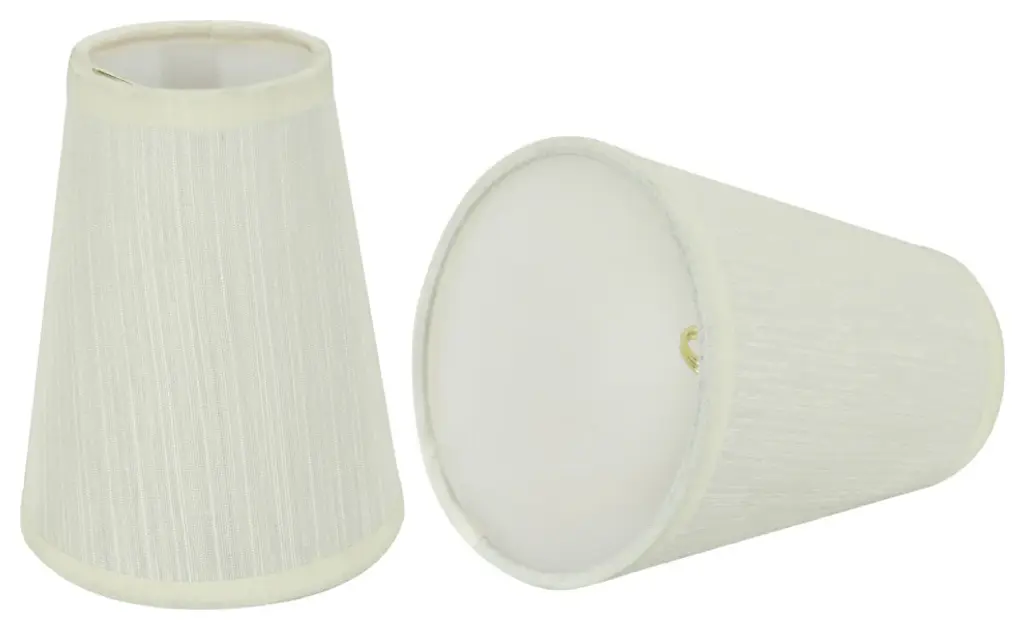 Aspen Creative is dedicated to offering a wide assortment of attractive and well-priced portable lamps, kitchen pendants, vanity wall fixtures, outdoor lighting fixtures, lamp shades, and lamp accessories. We have in-house designers that follow current trends and develop cool new products to meet those trends. Product Detail• Hardback Empire Shape Transitional (Mini Chandelier Lamp Shades) in White• Hardback Empire (clip on) Replacement Shade | Linen Fabric• Clip-on style fitter designed for bare Torpedo chandelier bulbs (bend tip bulbs not recommended) either in candelabra base (E12) or medium base (E26), light bulbs not included• Clip On Lamp Shade Dimensions: 4" top x 6" bottom x 5" slant height