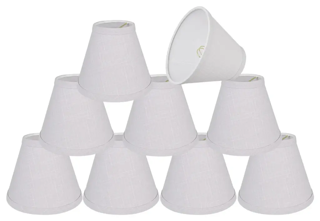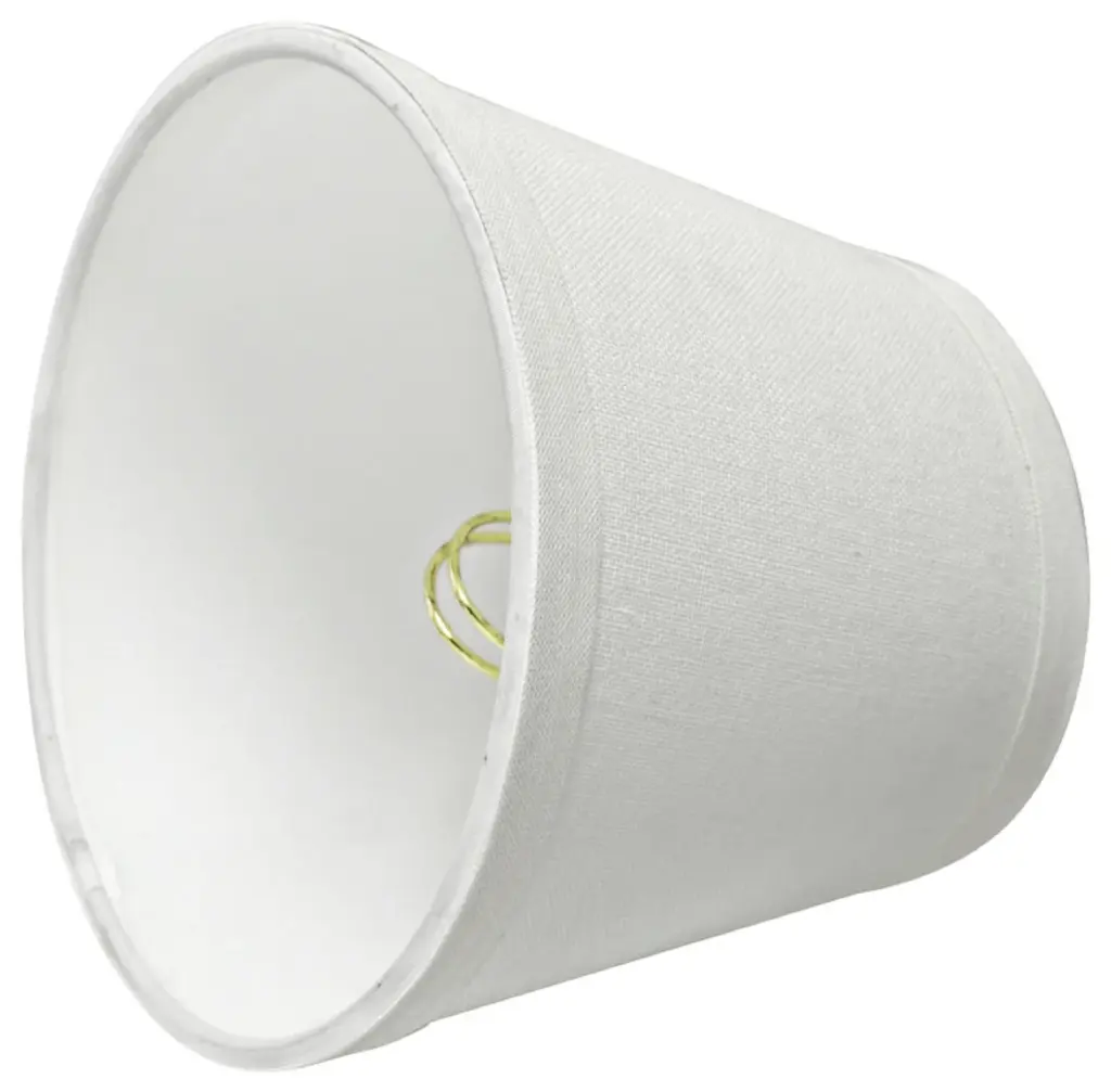 Aspen Creative is dedicated to offering a wide assortment of attractive and well-priced portable lamps, kitchen pendants, vanity wall fixtures, outdoor lighting fixtures, lamp shades, and lamp accessories. We have in-house designers that follow current trends and develop cool new products to meet those trends. Product Detail• Hardback Empire Shape Transitional (Mini Chandelier Lamp Shades) in White• Hardback Empire (clip on) Replacement Shade | Linen Fabric• Clip-on style fitter designed for bare Torpedo chandelier bulbs (bend tip bulbs not recommended) either in candelabra base (E12) or medium base (E26), light bulbs not included• Clip On Lamp Shade Dimensions: 4" top x 6" bottom x 5" slant height