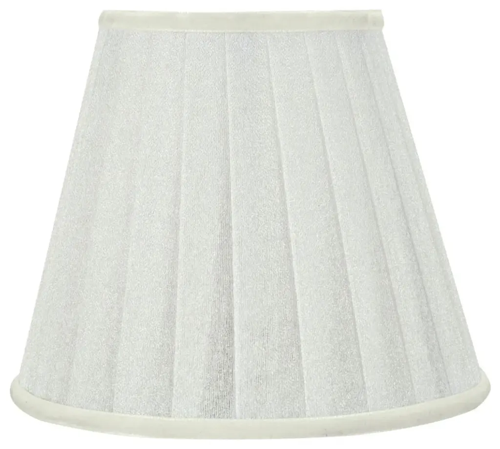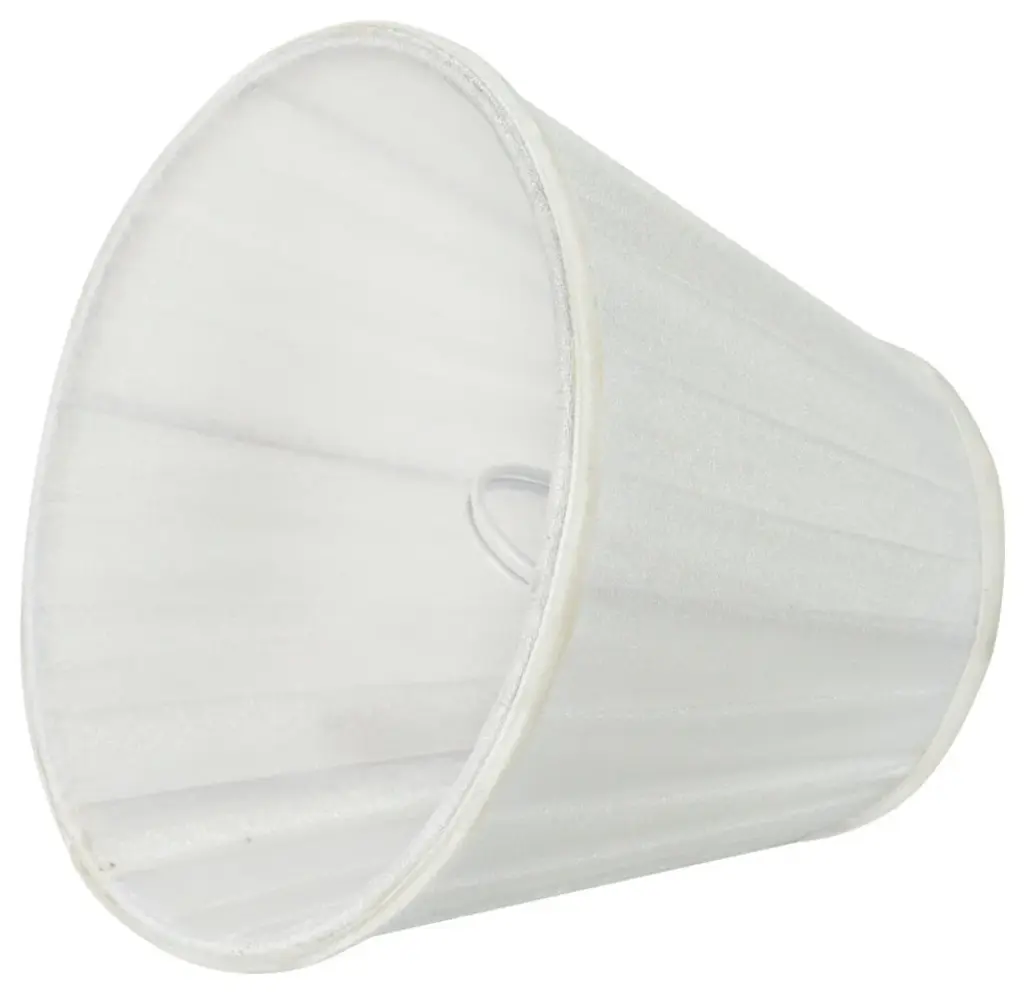 Aspen Creative is dedicated to offering a wide assortment of attractive and well-priced portable lamps, kitchen pendants, vanity wall fixtures, outdoor lighting fixtures, lamp shades, and lamp accessories. We have in-house designers that follow current trends and develop cool new products to meet those trends. Product Detail• Pleated Empire Shape Transitional (Mini Chandelier Lamp Shades) in White• Pleated Empire (clip on) Replacement Shade | Crystal Yarn Fabric• Clip-on style fitter designed for bare Torpedo chandelier bulbs (bend tip bulbs not recommended) either in candelabra base (E12) or medium base (E26), light bulbs not included• Clip On Lamp Shade Dimensions: 3" top x 5" bottom x 4 1/4" slant height
