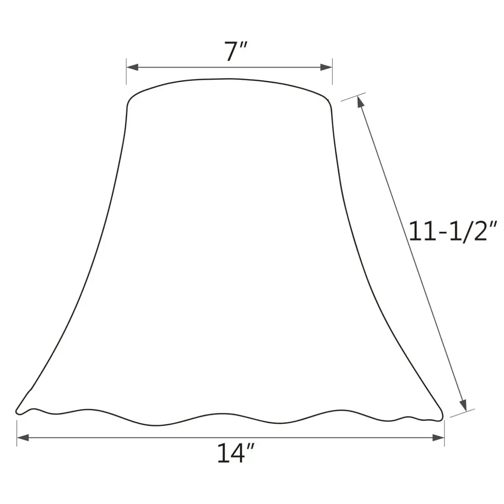 Aspen Creative is dedicated to offering a wide assortment of attractive and well-priced portable lamps, kitchen pendants, vanity wall fixtures, outdoor lighting fixtures, lamp shades, and lamp accessories. We have in-house designers that follow current trends and develop cool new products to meet those trends. Product Detail• 1 pack transitional scallop bell replacement lamp shade• faux silk fabric in taupe | 7" top x 14" bottom x 11 1/2" slant height• Spider construction lamp shade, designed to attach to lamp harp• Applications - For table lamps, accent lamps, vintage lamps, candle stick lamps and kid''s room lamps